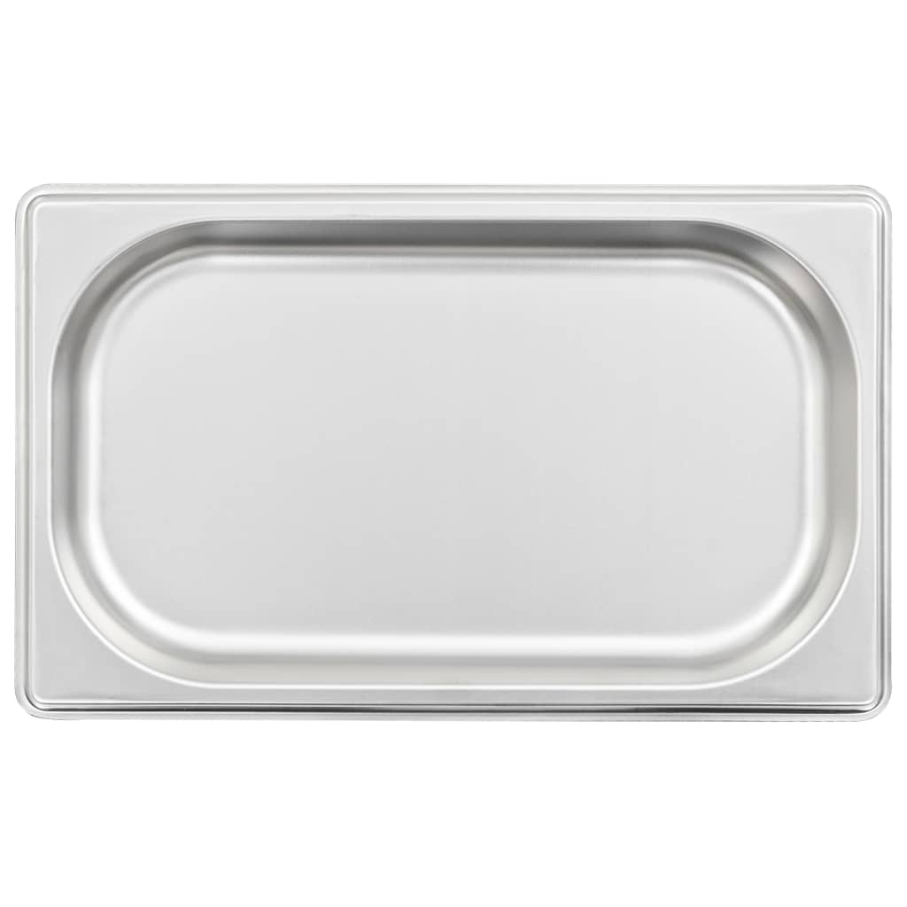 Diese stapelbaren Gastronorm-Behälter sind eine großartige Ergänzung zu Ihrem Küchengeschirr. Aus robustem Edelstahl gefertigt, weist der Gastronorm-Behälter eine solide Konstruktion auf. Dank des strapazierfähigen Materials ist er kratzfest und leicht zu reinigen. Das Bratblech mit Standard-Gastronorm- Abmessungen ermöglicht einen universellen Einsatz und eine Vielzahl von Kombinationen. Folglich passt es perfekt in alle professionelle Küchenschränke. Es eignet sich hervorragend für Bain-Marie, Chafing-Dishes und Salatbars. Das Kochgeschirr ist zudem stapelbar und kann demnach platzsparend verstaut werden. Daher ist sie sehr praktisch und ideal für den Einsatz in Restaurants, Hotels, auf Partys sowie zu Hause geeignet. Lieferung umfasst 12 Kochgeschirre.