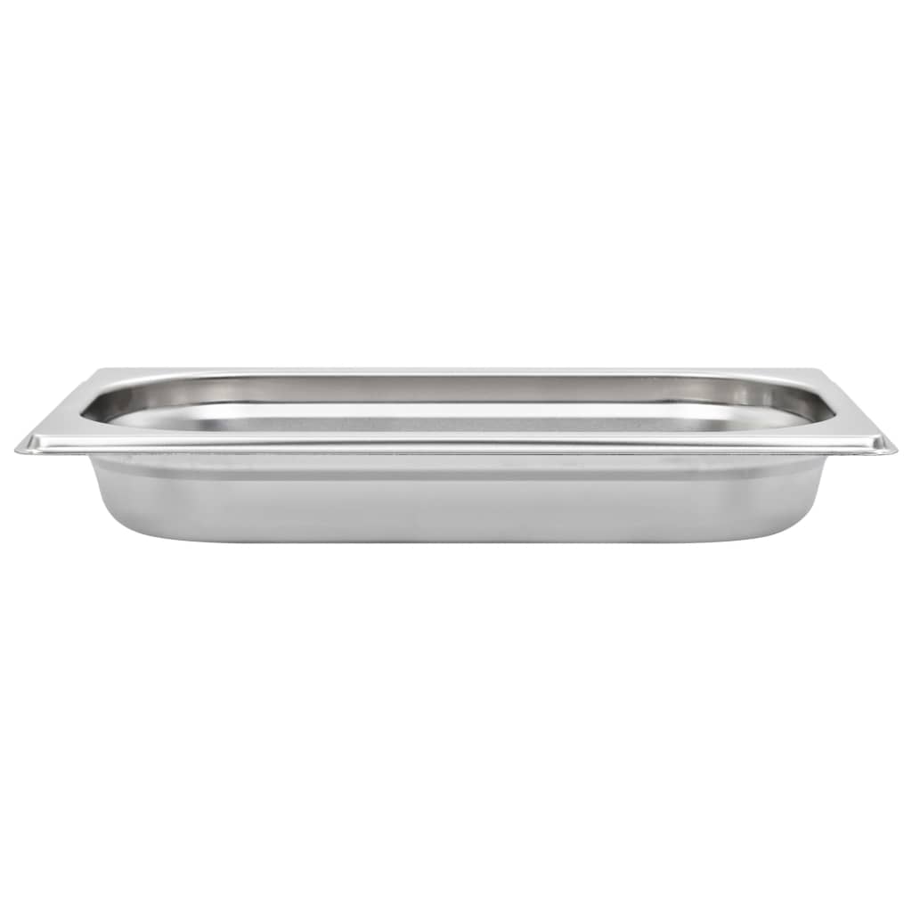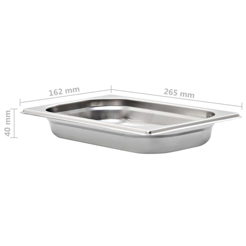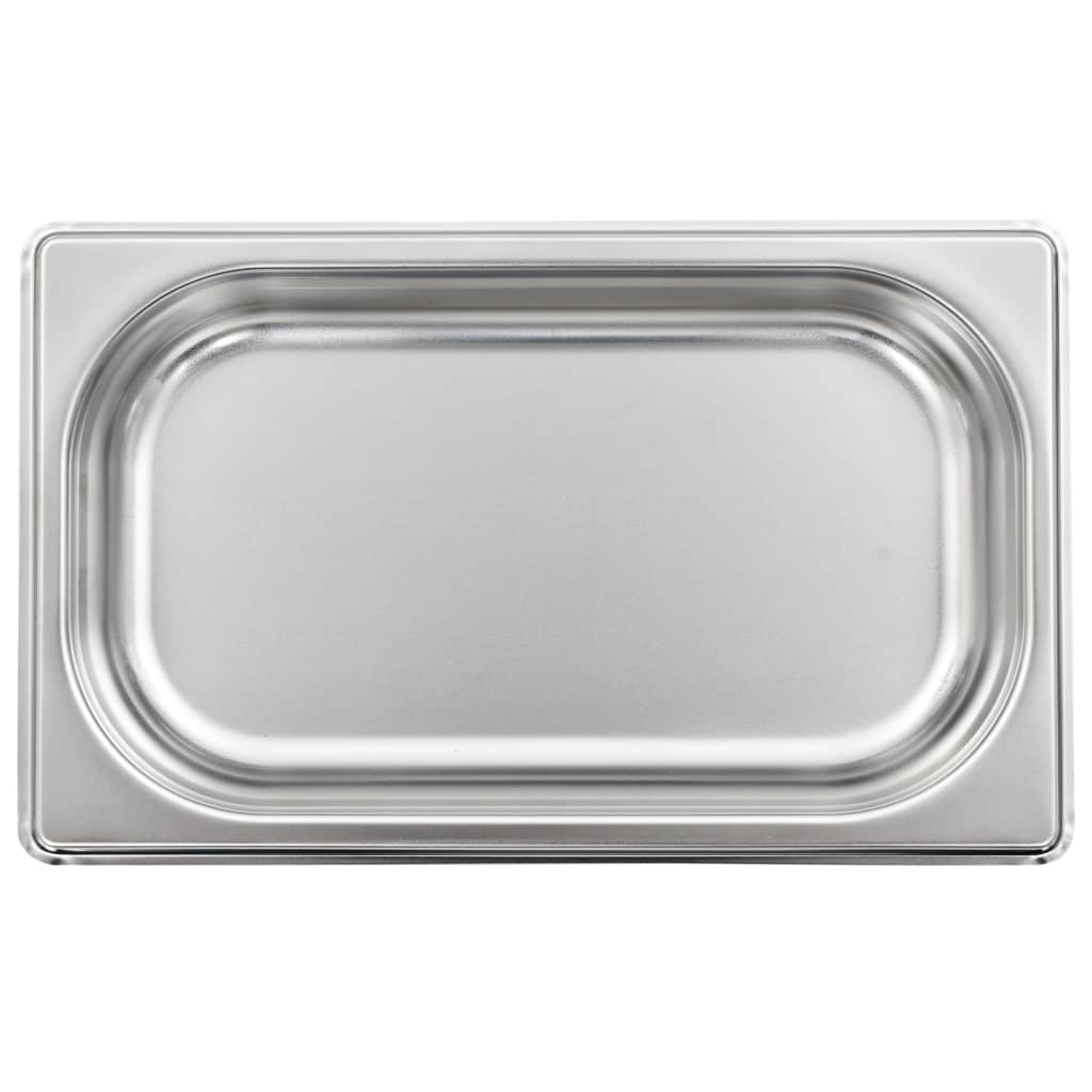 Diese stapelbaren Gastronorm-Behälter sind eine großartige Ergänzung zu Ihrem Küchengeschirr. Aus robustem Edelstahl gefertigt, weist der Gastronorm-Behälter eine solide Konstruktion auf. Dank des strapazierfähigen Materials ist er kratzfest und leicht zu reinigen. Das Bratblech mit Standard-Gastronorm- Abmessungen ermöglicht einen universellen Einsatz und eine Vielzahl von Kombinationen. Folglich passt es perfekt in alle professionelle Küchenschränke. Es eignet sich hervorragend für Bain-Marie, Chafing-Dishes und Salatbars. Das Kochgeschirr ist zudem stapelbar und kann demnach platzsparend verstaut werden. Daher ist sie sehr praktisch und ideal für den Einsatz in Restaurants, Hotels, auf Partys sowie zu Hause geeignet. Lieferung umfasst 12 Kochgeschirre.