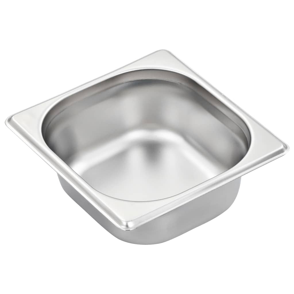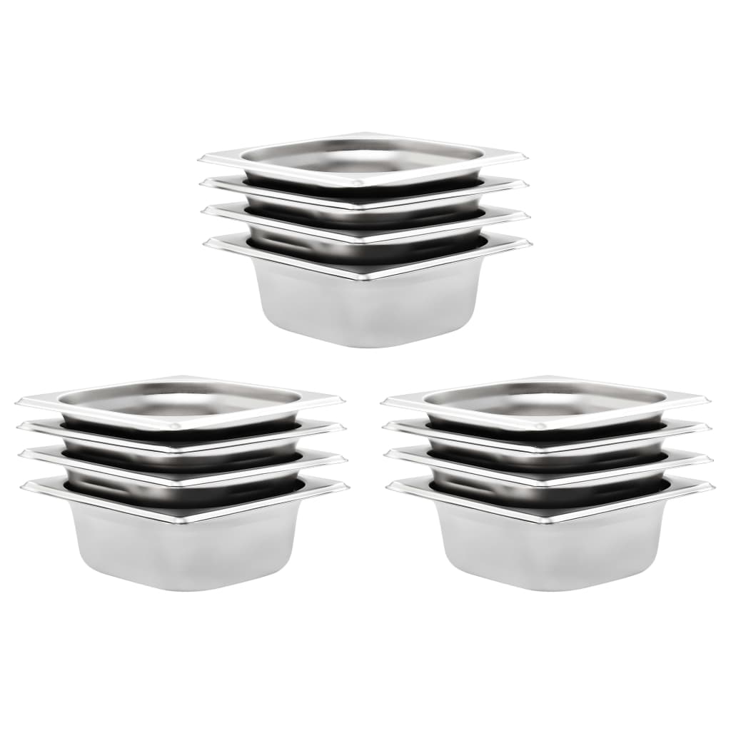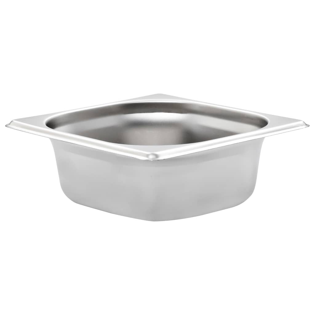 Diese stapelbaren Gastronorm-Behälter sind eine großartige Ergänzung zu Ihrem Küchengeschirr. Aus robustem Edelstahl gefertigt, weist der Gastronorm-Behälter eine solide Konstruktion auf. Dank des strapazierfähigen Materials ist er kratzfest und leicht zu reinigen. Das Bratblech mit Standard-Gastronorm- Abmessungen ermöglicht einen universellen Einsatz und eine Vielzahl von Kombinationen. Folglich passt es perfekt in alle professionelle Küchenschränke. Es eignet sich hervorragend für Bain-Marie, Chafing-Dishes und Salatbars. Das Kochgeschirr ist zudem stapelbar und kann demnach platzsparend verstaut werden. Daher ist sie sehr praktisch und ideal für den Einsatz in Restaurants, Hotels, auf Partys sowie zu Hause geeignet. Lieferung umfasst 12 Kochgeschirre.