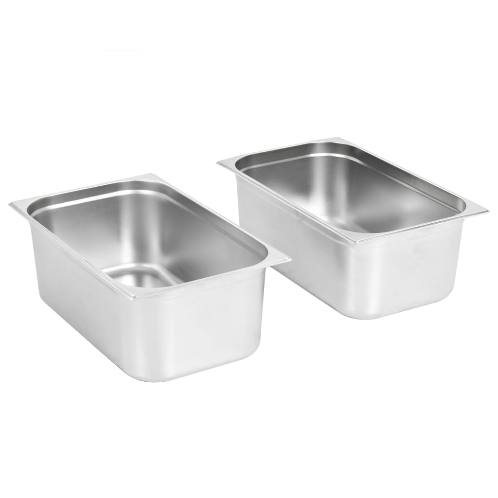 Diese stapelbaren Gastronorm-Behälter sind eine großartige Ergänzung zu Ihrem Küchengeschirr. Aus robustem Edelstahl gefertigt, weist der Gastronorm-Behälter eine solide Konstruktion auf. Dank des strapazierfähigen Materials ist er kratzfest und leicht zu reinigen. Das Bratblech mit Standard-Gastronorm- Abmessungen ermöglicht einen universellen Einsatz und eine Vielzahl von Kombinationen. Folglich passt es perfekt in alle professionelle Küchenschränke. Es eignet sich hervorragend für Bain-Marie, Chafing-Dishes und Salatbars. Das Kochgeschirr ist zudem stapelbar und kann demnach platzsparend verstaut werden. Daher ist sie sehr praktisch und ideal für den Einsatz in Restaurants, Hotels, auf Partys sowie zu Hause geeignet. Lieferung umfasst 2 Kochgeschirre.