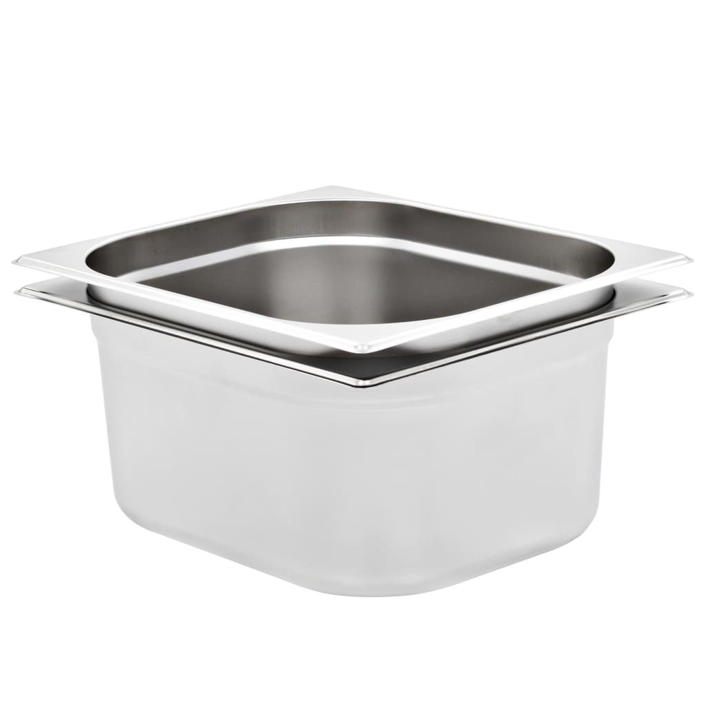 Diese stapelbaren Gastronorm-Behälter sind eine großartige Ergänzung zu Ihrem Küchengeschirr. Aus robustem Edelstahl gefertigt, weist der Gastronorm-Behälter eine solide Konstruktion auf. Dank des strapazierfähigen Materials ist er kratzfest und leicht zu reinigen. Das Bratblech mit Standard-Gastronorm- Abmessungen ermöglicht einen universellen Einsatz und eine Vielzahl von Kombinationen. Folglich passt es perfekt in alle professionelle Küchenschränke. Es eignet sich hervorragend für Bain-Marie, Chafing-Dishes und Salatbars. Das Kochgeschirr ist zudem stapelbar und kann demnach platzsparend verstaut werden. Daher ist sie sehr praktisch und ideal für den Einsatz in Restaurants, Hotels, auf Partys sowie zu Hause geeignet. Lieferung umfasst 2 Kochgeschirre.