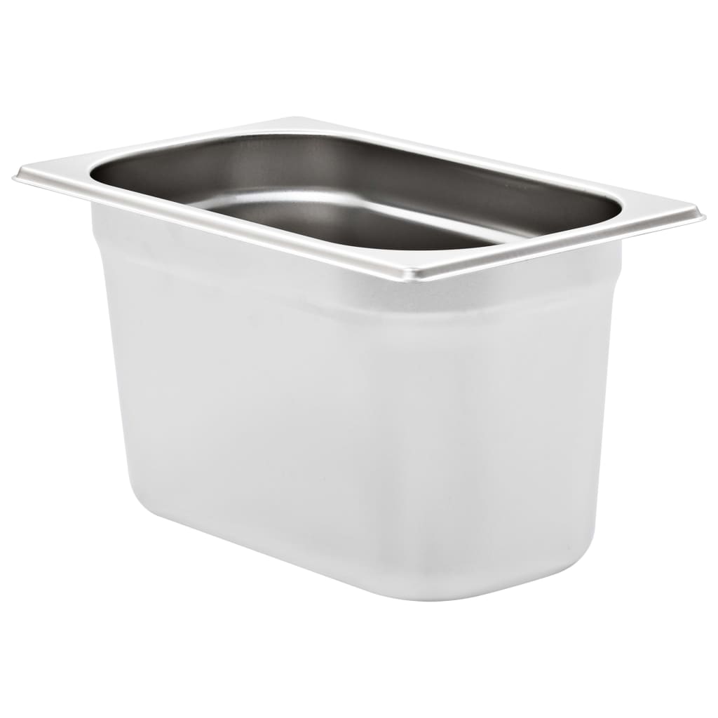 Diese stapelbaren Gastronorm-Behälter sind eine großartige Ergänzung zu Ihrem Küchengeschirr. Aus robustem Edelstahl gefertigt, weist der Gastronorm-Behälter eine solide Konstruktion auf. Dank des strapazierfähigen Materials ist er kratzfest und leicht zu reinigen. Das Bratblech mit Standard-Gastronorm- Abmessungen ermöglicht einen universellen Einsatz und eine Vielzahl von Kombinationen. Folglich passt es perfekt in alle professionelle Küchenschränke. Es eignet sich hervorragend für Bain-Marie, Chafing-Dishes und Salatbars. Das Kochgeschirr ist zudem stapelbar und kann demnach platzsparend verstaut werden. Daher ist sie sehr praktisch und ideal für den Einsatz in Restaurants, Hotels, auf Partys sowie zu Hause geeignet. Lieferung umfasst 4 Kochgeschirre.