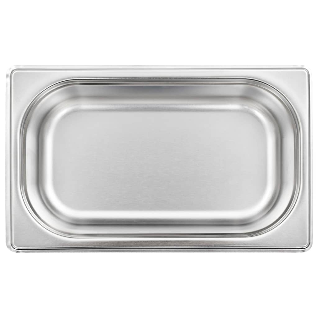 Diese stapelbaren Gastronorm-Behälter sind eine großartige Ergänzung zu Ihrem Küchengeschirr. Aus robustem Edelstahl gefertigt, weist der Gastronorm-Behälter eine solide Konstruktion auf. Dank des strapazierfähigen Materials ist er kratzfest und leicht zu reinigen. Das Bratblech mit Standard-Gastronorm- Abmessungen ermöglicht einen universellen Einsatz und eine Vielzahl von Kombinationen. Folglich passt es perfekt in alle professionelle Küchenschränke. Es eignet sich hervorragend für Bain-Marie, Chafing-Dishes und Salatbars. Das Kochgeschirr ist zudem stapelbar und kann demnach platzsparend verstaut werden. Daher ist sie sehr praktisch und ideal für den Einsatz in Restaurants, Hotels, auf Partys sowie zu Hause geeignet. Lieferung umfasst 8 Kochgeschirre.
