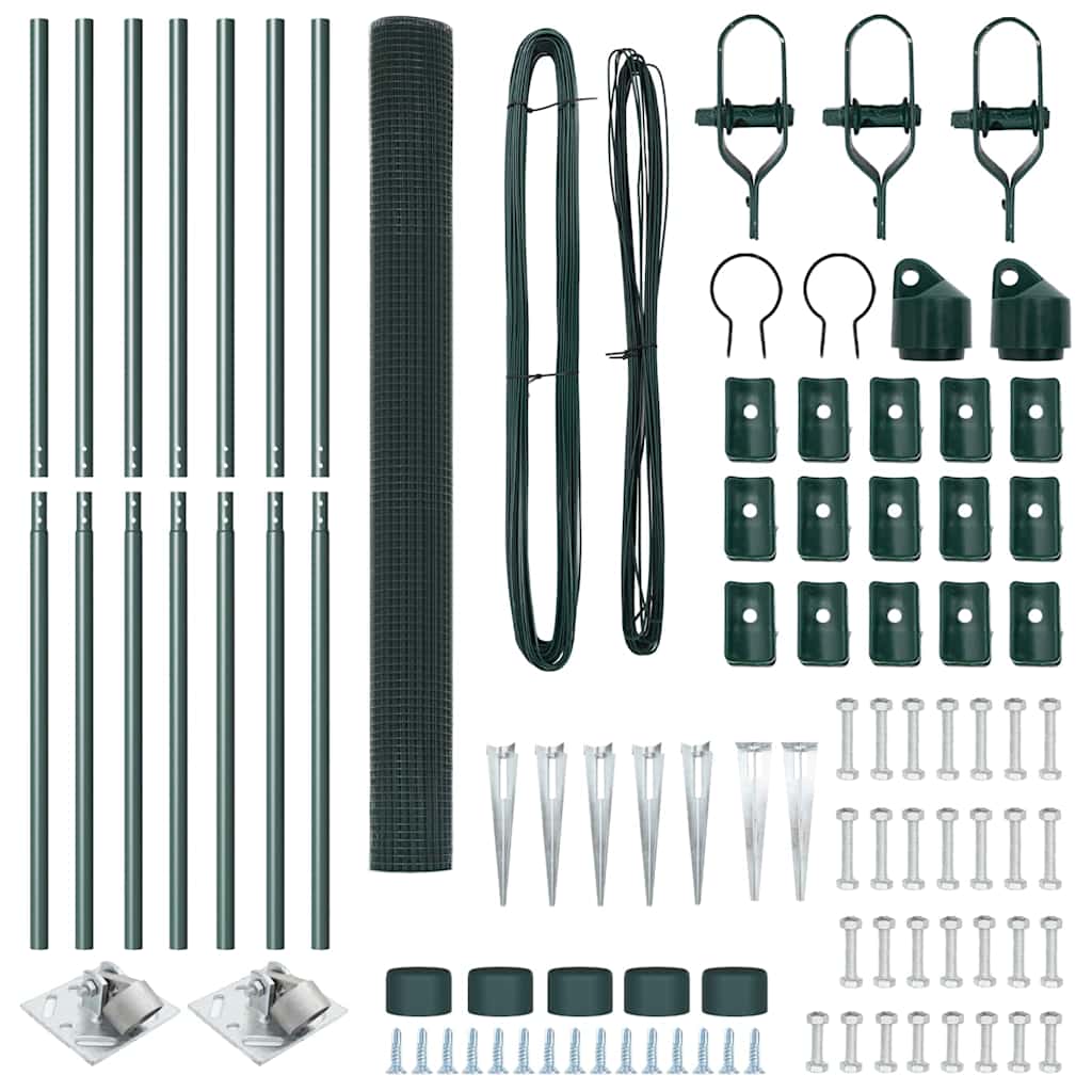 Das vidaXL Geknotete Drahtzaun Set ist eine robuste und stylische Zaunlsung fr den Auenbereich. Es ist stabil gebaut und hat ein schnes mattes Grn, das es wetterfest macht und perfekt in jeden Garten passt.