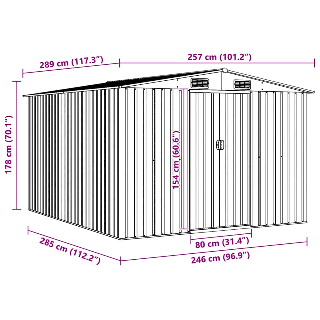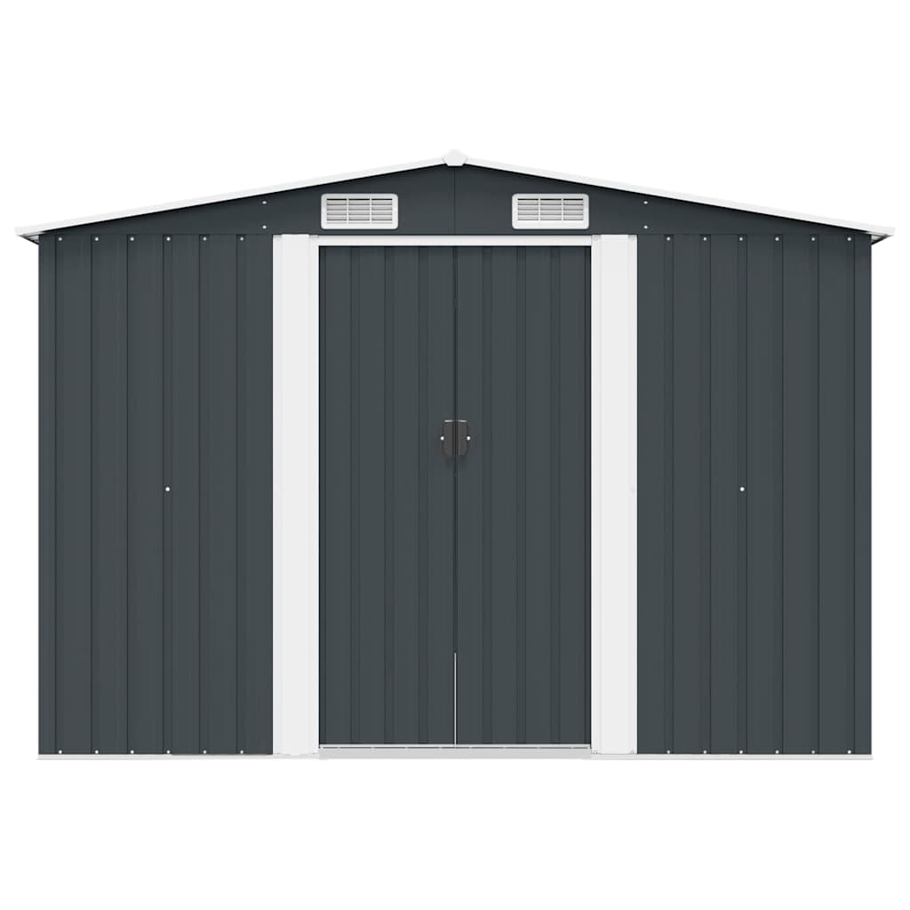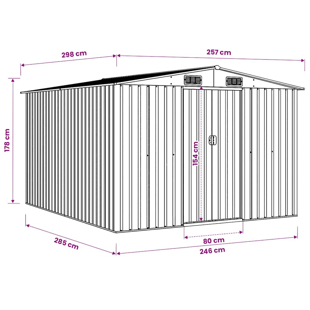 Der Geräteschuppen aus Metall eignet sich perfekt für die Aufbewahrung einer Vielzahl von Werkzeugen, Geräten, Gartenmöbeln usw. Der Gartenschuppen bietet nicht nur Schutz vor Staub und Schmutz, sondern auch vor Wind, Sonne und Niederschlag. Dieses Gerätehaus hat sowohl vorne als auch hinten Lüftungsgitter, die eine hervorragende Belüftung gewährleisten. Seine Doppel-Schiebetüren an der Vorderseite ermöglichen einen einfachen Ein- und Ausstieg. Dank der verzinkten Stahlkonstruktion und der pulverbeschichteten Oberfläche ist der Geräteschuppen langlebig und robust. Der Garten-Lagerschuppen muss zusammengebaut werden.