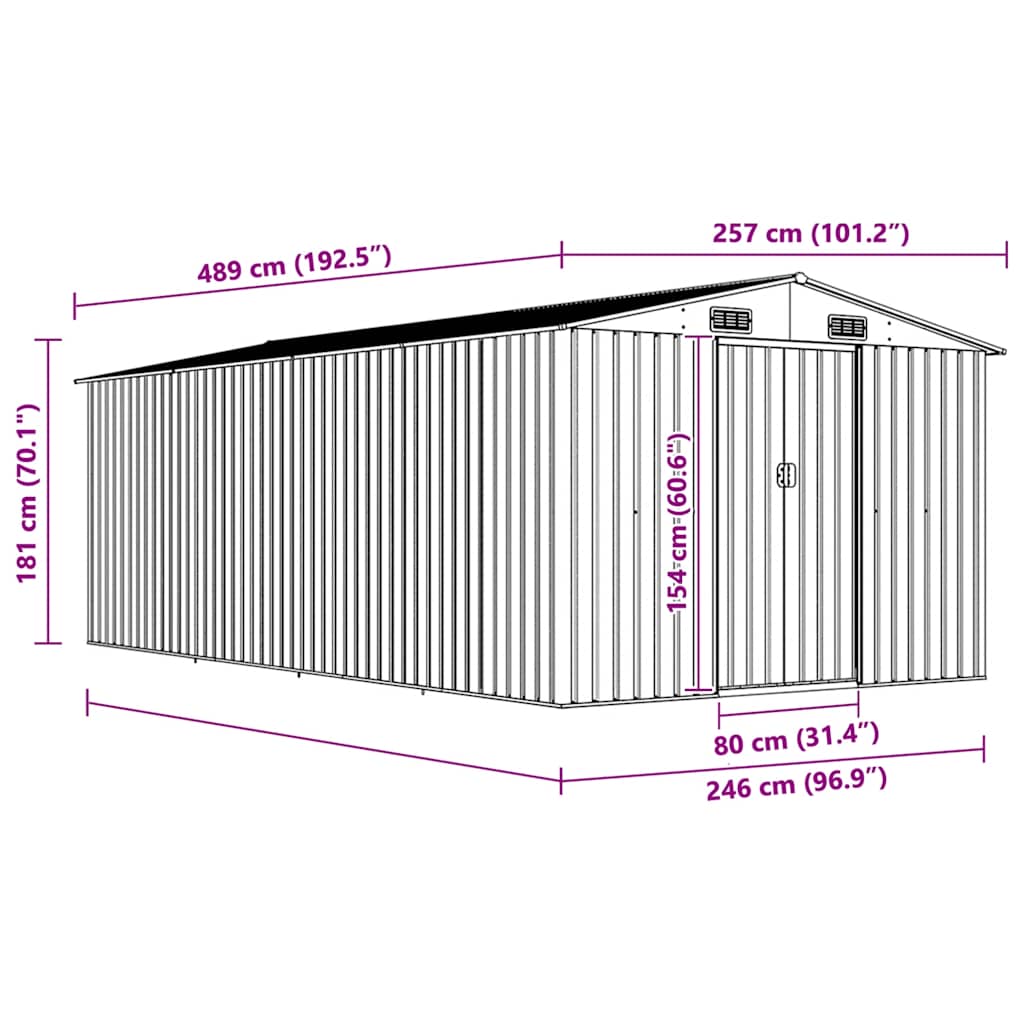 Der Geräteschuppen aus Metall eignet sich perfekt für die Aufbewahrung einer Vielzahl von Werkzeugen, Geräten, Gartenmöbeln usw. Der Gartenschuppen bietet nicht nur Schutz vor Staub und Schmutz, sondern auch vor Wind, Sonne und Niederschlag. Dieses Gerätehaus hat sowohl vorne als auch hinten Lüftungsgitter, die eine hervorragende Belüftung gewährleisten. Seine Doppel-Schiebetüren an der Vorderseite ermöglichen einen einfachen Ein- und Ausstieg. Dank der verzinkten Stahlkonstruktion und der pulverbeschichteten Oberfläche ist der Geräteschuppen langlebig und robust. Der Garten-Lagerschuppen muss zusammengebaut werden.
