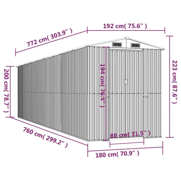 Dieses Gerätehaus sollte aus deinem Garten nicht fehlen, da es eine hervorragende Lösung für die Aufbewahrung von verschiedenen Gegenständen wie Werkzeugen, Poolzubehör, Gartengeräten und ähnlicher Ausrüstung bietet. Langlebiges Material: Der Geräteschuppen besteht aus verzinktem Stahl, der langlebig ist und nicht korrodiert oder durch widrige Wetterbedingungen beeinträchtigt wird.Viel Stauraum: Der Geräteschuppen ist erstaunlich geräumig und bietet Platz für eine Vielzahl von Werkzeugen, Gartenmöbeln und Geräten.Praktisches Design: Dieses Gartenhaus verfügt über Lüftungsöffnungen an der Vorder- und Rückseite, die eine hervorragende Luftzirkulation gewährleisten. Die doppelten Schiebetüren ermöglichen einen einfachen Zugang. Hinweis:Jedes Produkt wird mit einer Montageanleitung in der Verpackung für eine einfache Montage geliefert.