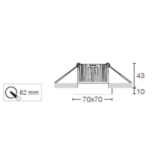 - die Form der Einbauleuchte ist eckig mit einer stark nach hinten versetzten COB LED