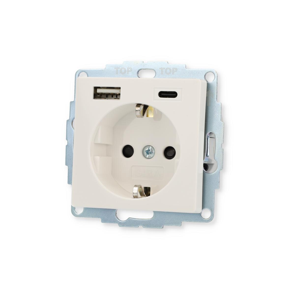 SCHUKO-Steckdose 16 A 250 V~ mit Shutter und USB-Spannungsversorgung 2fachTyp A Typ C