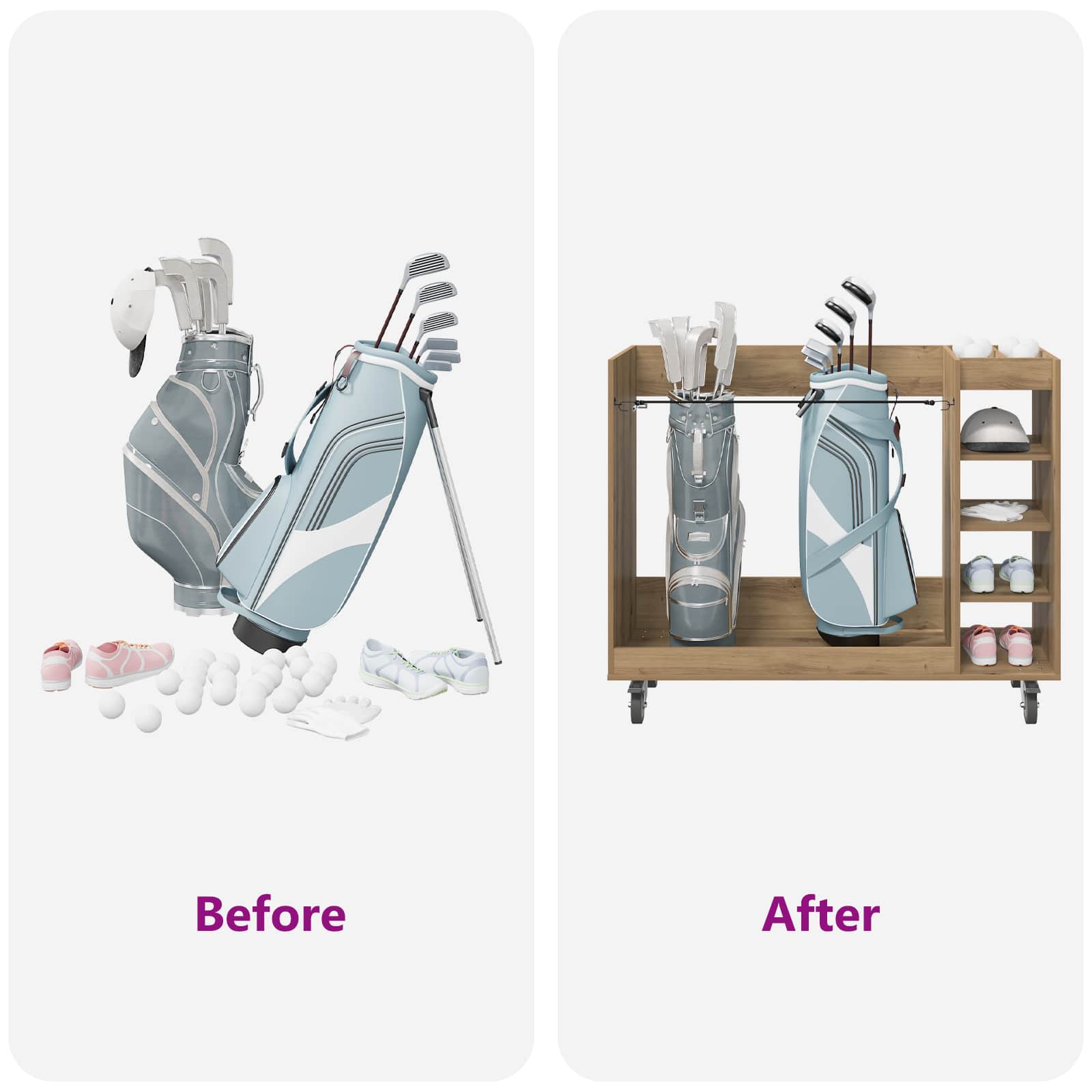 Dieser Holzgolfschrank ist eine moderne und flexible Lösung für Golf-Enthusiasten und Dekorateure. Sein elegantes, rechteckiges Design fügt sich perfekt in jede Umgebung ein. Stell dir vor, der Schrank sorgt dafür, dass dein ganzes Golf-Zubehör immer ordentlich verstaut und schnell griffbereit ist. Materialien: Aus hochwertigem Holz mit robusten Metallakzenten gebaut, bietet dieser Schrank tolle Stabilität. Die glatte Holzoberfläche sieht nicht nur schick aus, sondern schützt auch vor Abnutzung und macht ihn perfekt für den langfristigen Einsatz. Enthaltene Komponenten: Der Schrank hat separate Regale, die flexibel genutzt werden können. So hast du viele Möglichkeiten, dein Golf-Zubehör ordentlich zu verstauen. Mit einer hübschen Rückseite kann er auch als Raumteiler dienen und sorgt dafür, dass alles schön aufgeräumt aussieht. Funktionen/Funktion/Design: Dieser moderne Schrank legt Wert auf Einfachheit und Funktionalität. Er bietet viel Stauraum und richtet sich an alle, die einen organisierten Platz für ihr Golf-Zubehör suchen. Empfohlene Nutzung: Der Schrank ist perfekt für Innenräume, besonders in Garagen oder Werkstätten, und passt sich super seiner Umgebung an. Er sorgt dafür, dass Unordnung verschwindet und deinem Wohnraum das gewisse Etwas verleiht. Pflege und Wartung: Regelmäßige Pflege bedeutet einfaches Abstauben mit einem weichen Tuch. Vermeide Feuchtigkeit und benutze keine scharfen Reinigungsmittel, damit das tolle Finish erhalten bleibt und der Schrank immer in Top-Zustand aussieht.