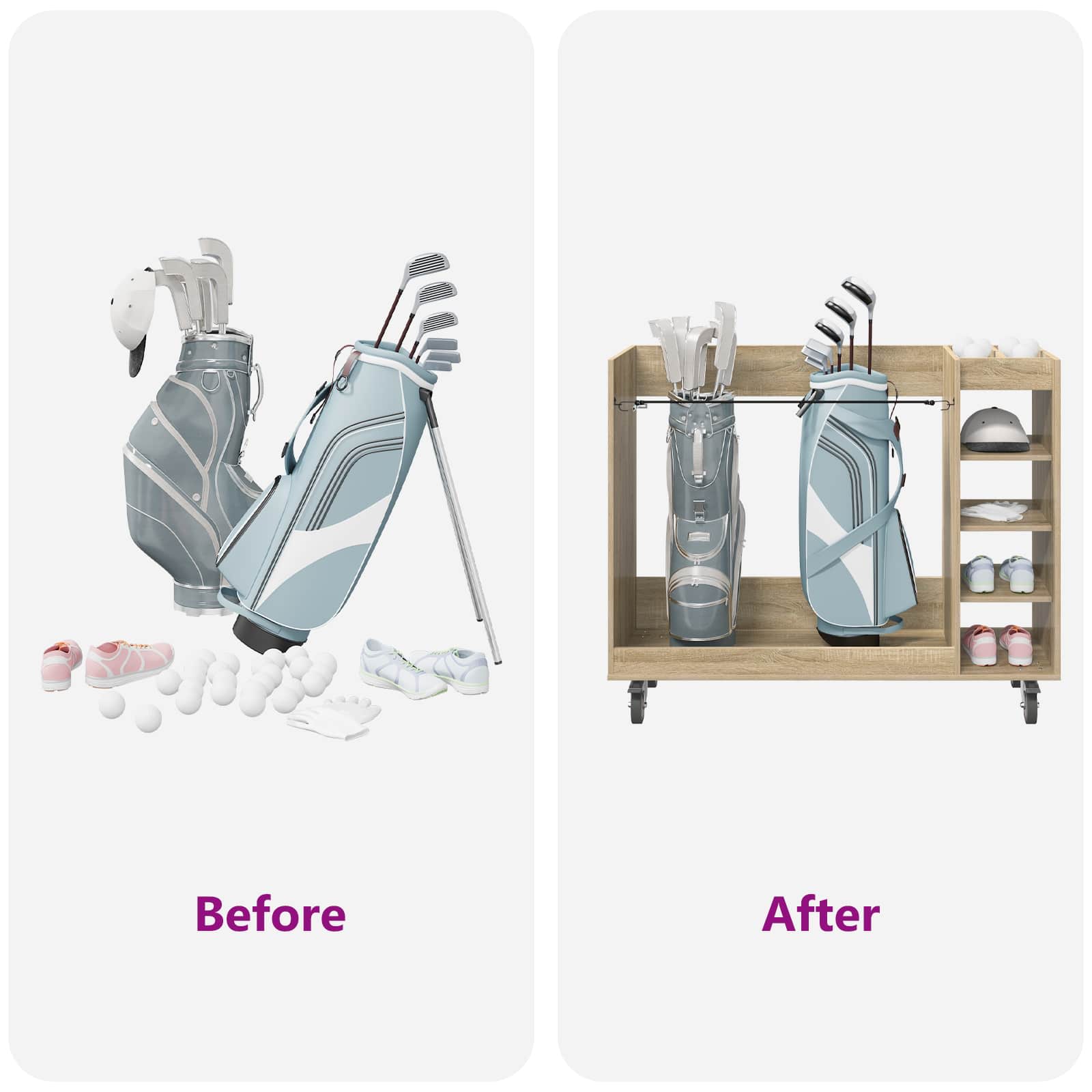 Dieser Holzgolfschrank ist eine moderne und flexible Lösung für Golf-Enthusiasten und Dekorateure. Sein elegantes, rechteckiges Design fügt sich perfekt in jede Umgebung ein. Stell dir vor, der Schrank sorgt dafür, dass dein ganzes Golf-Zubehör immer ordentlich verstaut und schnell griffbereit ist. Materialien: Aus hochwertigem Holz mit robusten Metallakzenten gebaut, bietet dieser Schrank tolle Stabilität. Die glatte Holzoberfläche sieht nicht nur schick aus, sondern schützt auch vor Abnutzung und macht ihn perfekt für den langfristigen Einsatz. Enthaltene Komponenten: Der Schrank hat separate Regale, die flexibel genutzt werden können. So hast du viele Möglichkeiten, dein Golf-Zubehör ordentlich zu verstauen. Mit einer hübschen Rückseite kann er auch als Raumteiler dienen und sorgt dafür, dass alles schön aufgeräumt aussieht. Funktionen/Funktion/Design: Dieser moderne Schrank legt Wert auf Einfachheit und Funktionalität. Er bietet viel Stauraum und richtet sich an alle, die einen organisierten Platz für ihr Golf-Zubehör suchen. Empfohlene Nutzung: Der Schrank ist perfekt für Innenräume, besonders in Garagen oder Werkstätten, und passt sich super seiner Umgebung an. Er sorgt dafür, dass Unordnung verschwindet und deinem Wohnraum das gewisse Etwas verleiht. Pflege und Wartung: Regelmäßige Pflege bedeutet einfaches Abstauben mit einem weichen Tuch. Vermeide Feuchtigkeit und benutze keine scharfen Reinigungsmittel, damit das tolle Finish erhalten bleibt und der Schrank immer in Top-Zustand aussieht.