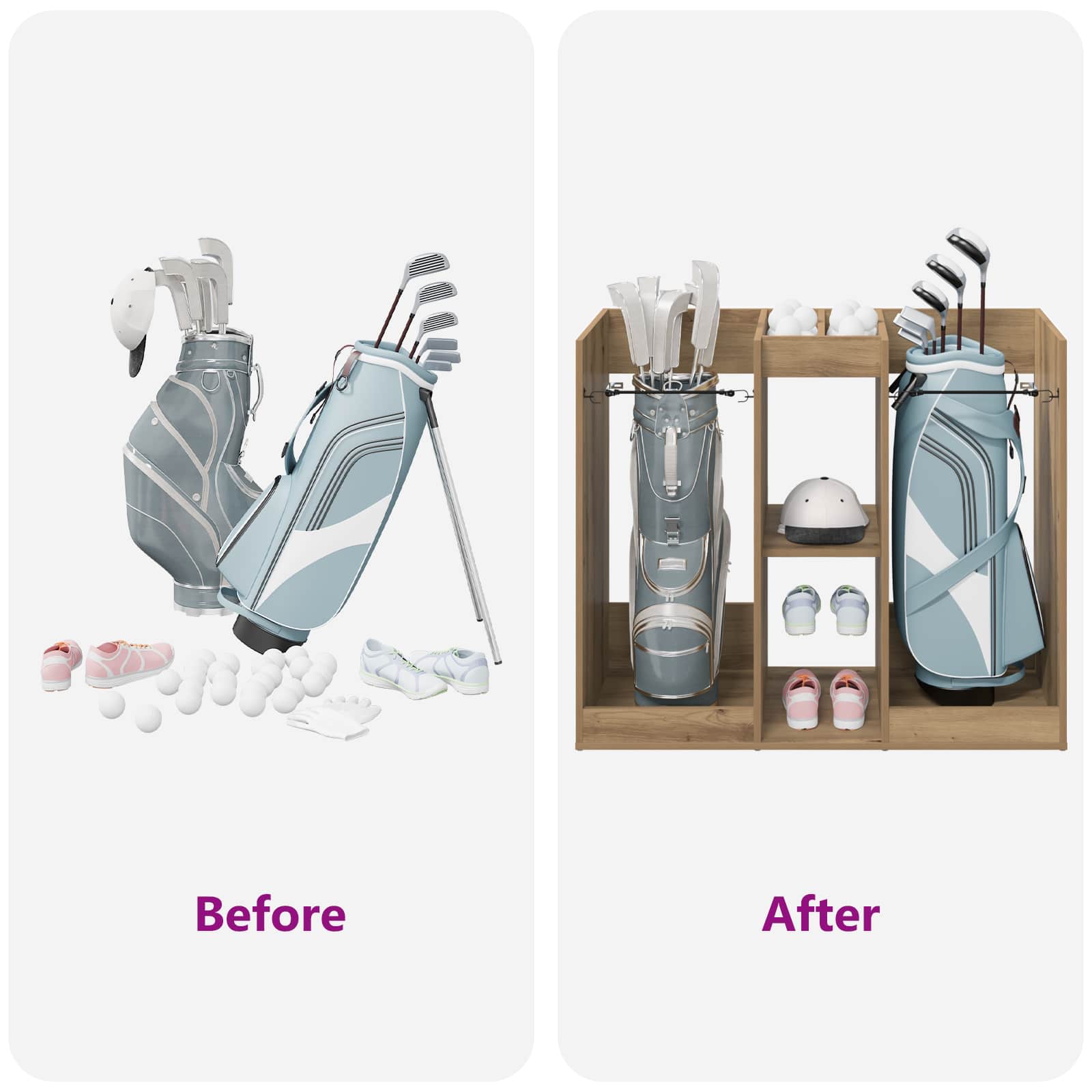 Dieser Holzgolfschrank ist eine moderne und flexible Lösung für Golf-Enthusiasten und Dekorateure. Sein elegantes, rechteckiges Design fügt sich perfekt in jede Umgebung ein. Stell dir vor, der Schrank sorgt dafür, dass dein ganzes Golf-Zubehör immer ordentlich verstaut und schnell griffbereit ist. Materialien: Aus hochwertigem Holz mit robusten Metallakzenten gebaut, bietet dieser Schrank tolle Stabilität. Die glatte Holzoberfläche sieht nicht nur schick aus, sondern schützt auch vor Abnutzung und macht ihn perfekt für den langfristigen Einsatz. Enthaltene Komponenten: Der Schrank hat separate Regale, die flexibel genutzt werden können. So hast du viele Möglichkeiten, dein Golf-Zubehör ordentlich zu verstauen. Mit einer hübschen Rückseite kann er auch als Raumteiler dienen und sorgt dafür, dass alles schön aufgeräumt aussieht. Funktionen/Funktion/Design: Dieser moderne Schrank legt Wert auf Einfachheit und Funktionalität. Er bietet viel Stauraum und richtet sich an alle, die einen organisierten Platz für ihr Golf-Zubehör suchen. Empfohlene Nutzung: Der Schrank ist perfekt für Innenräume, besonders in Garagen oder Werkstätten, und passt sich super seiner Umgebung an. Er sorgt dafür, dass Unordnung verschwindet und deinem Wohnraum das gewisse Etwas verleiht. Pflege und Wartung: Regelmäßige Pflege bedeutet einfaches Abstauben mit einem weichen Tuch. Vermeide Feuchtigkeit und benutze keine scharfen Reinigungsmittel, damit das tolle Finish erhalten bleibt und der Schrank immer in Top-Zustand aussieht.