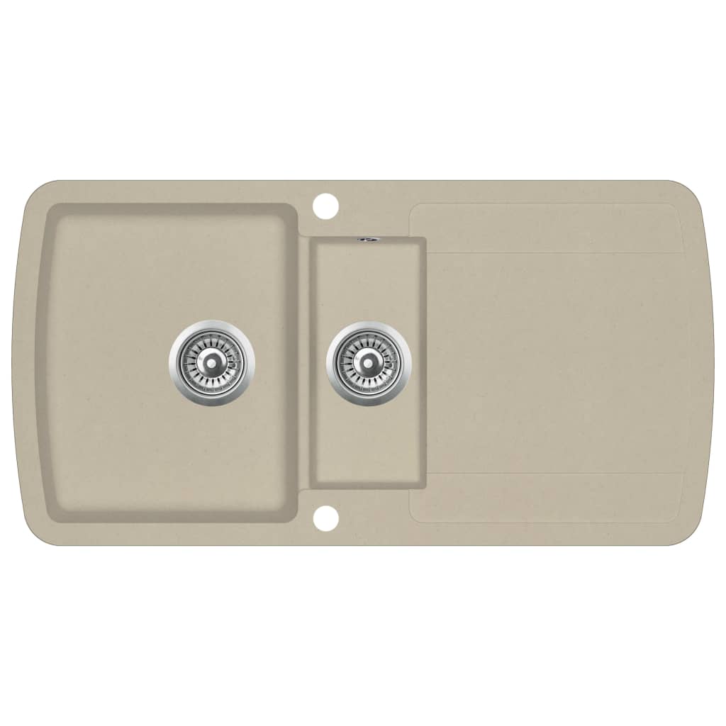 Unsere Granitspüle stellt sowohl eine benutzerfreundliche als auch eine zeitlose Bereicherung für Ihren Küchendekor dar. Sie verfügt über doppelte, extra tiefe Becken und ein elegantes Design. Dank qualitativ hochwertigem Granit ist das Spülbecken nicht nur schlagfest, hitze- und kratzbeständig, sondern lässt sich auch ganz einfach reinigen. Die Spüle ist außerdem vollständig reversibel, so dass Sie diese Spüle sowohl auf der rechten als auch auf der linken Seite einbauen können. Im Lieferumfang ist auch ein Siebkörbchen enthalten, um gröberen Schmutz beim Abwaschen aufzufangen. Die Montage der Spüle ist einfach.