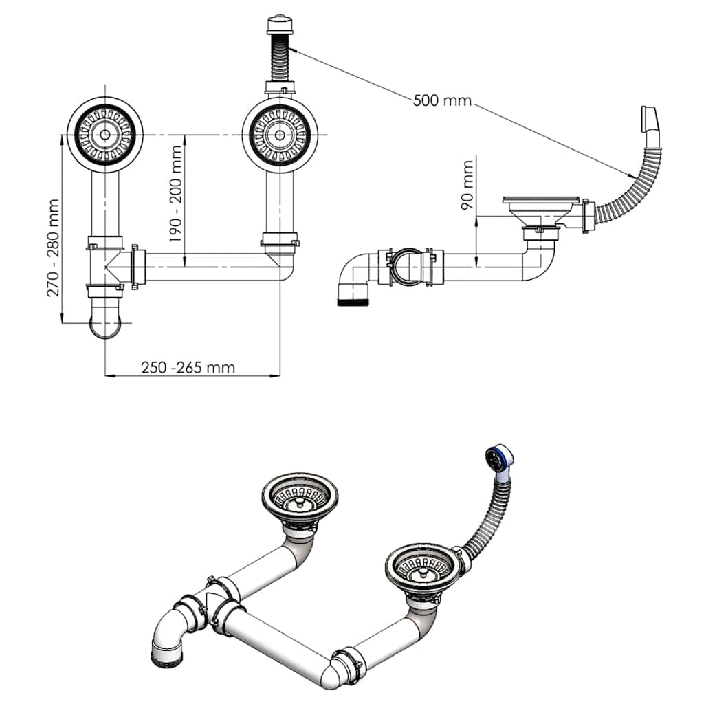 - Unterschrank: mindestens 900 mm