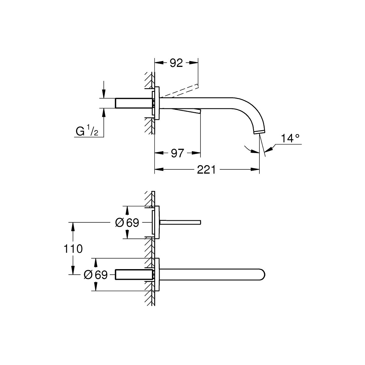 - Ausladung 221 mm