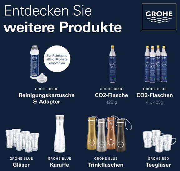Sie benötigen zudem einen wiederverwendbaren GROHE Blue Adapter für die Reinigungskartusche (40694000).
