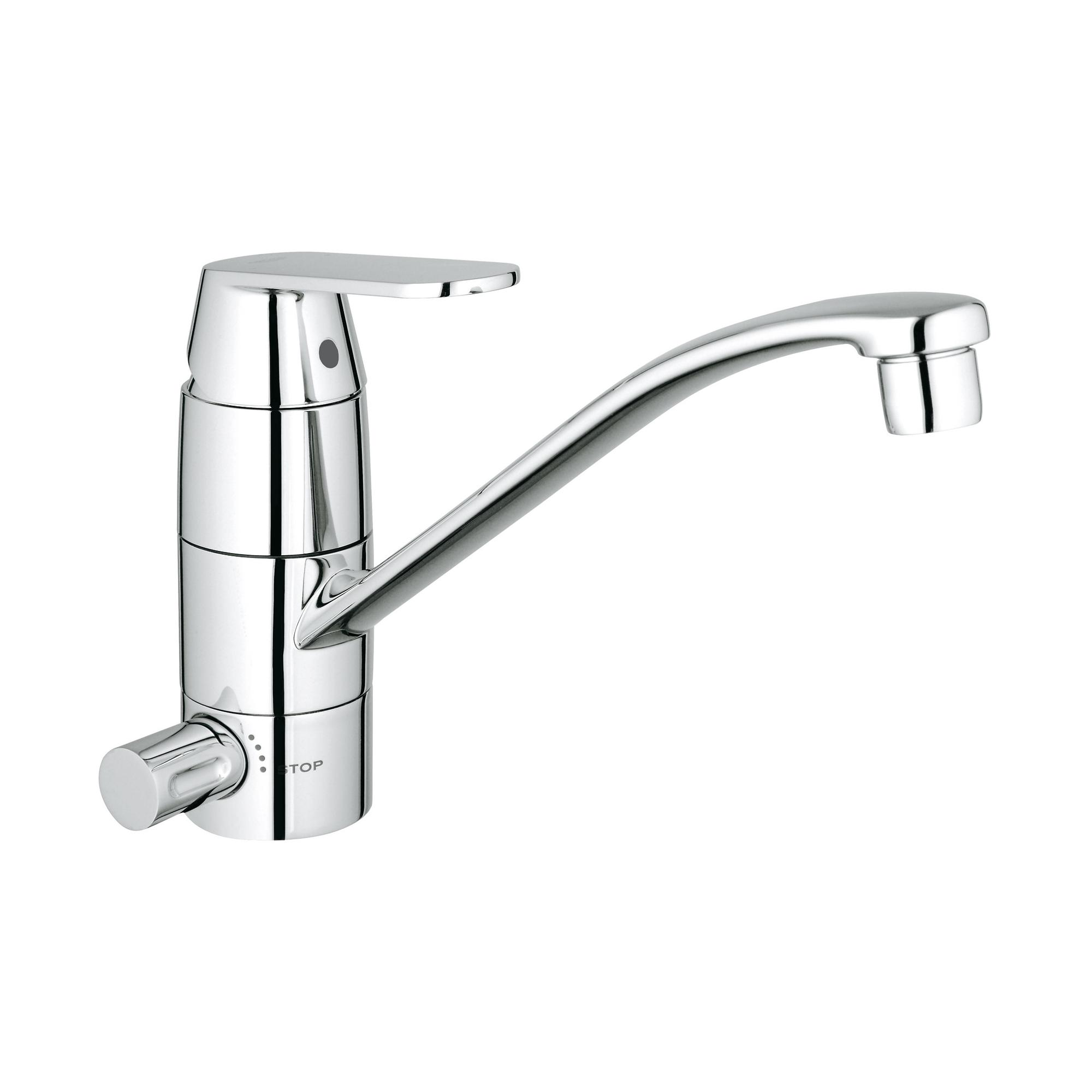 Die elegante, langlebige und raffiniert konzipierte Eurosmart Cosmopolitan Spültischarmatur ist mit einem integrierten Absperrventil ausgestattet, sodass Sie das Wasser für Ihre Geschirrspülmaschine einfach abstellen können, wenn dies notwendig ist. Als Einhand-Armatur ist sie leicht bedienbar und besitzt eine hochmoderne GROHE SilkMove Keramikkartusche, sodass Sie die Wassertemperatur und den Wasserfluss mit hoher und müheloser Genauigkeit regeln können.