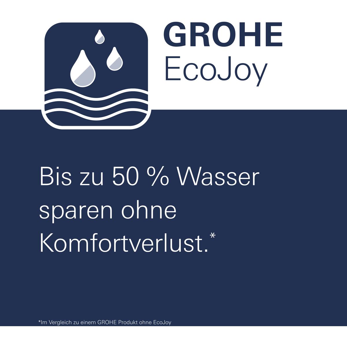Die GROHE EcoJoy Produkte sind konsequent auf Wasser- und Energiesparen und damit auf die Schonung wertvoller Ressourcen ausgelegt. Die Produkte, die mit integrierten Wasserspartechnologien ausgestattet sind, bieten gleichzeitig ein perfektes Wassererlebnis ohne Kompromisse. So geht die Reduzierung von Wasser- und Energieverbrauch Hand in Hand mit perfektem Komfort und ansprechendem Design. Weniger Wasser. Perfekter Genuss.