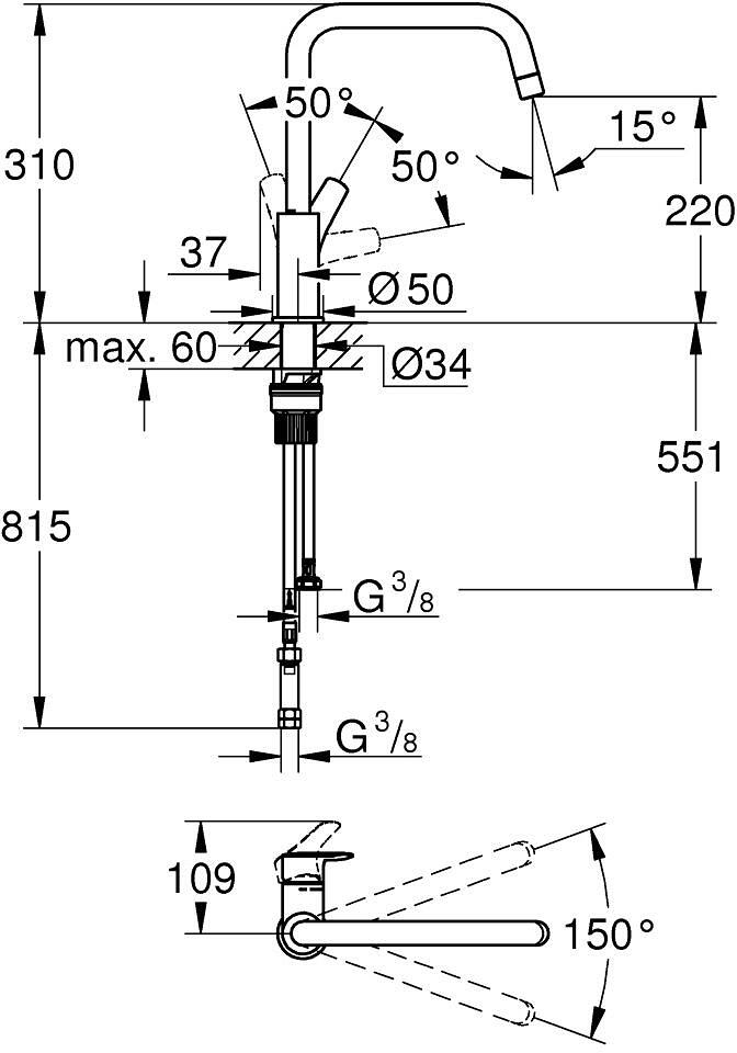 GROHE Start Einhand-Spültischbatterie, Quickfix, Niederdruck, 1/2", matt black (1012422430)
