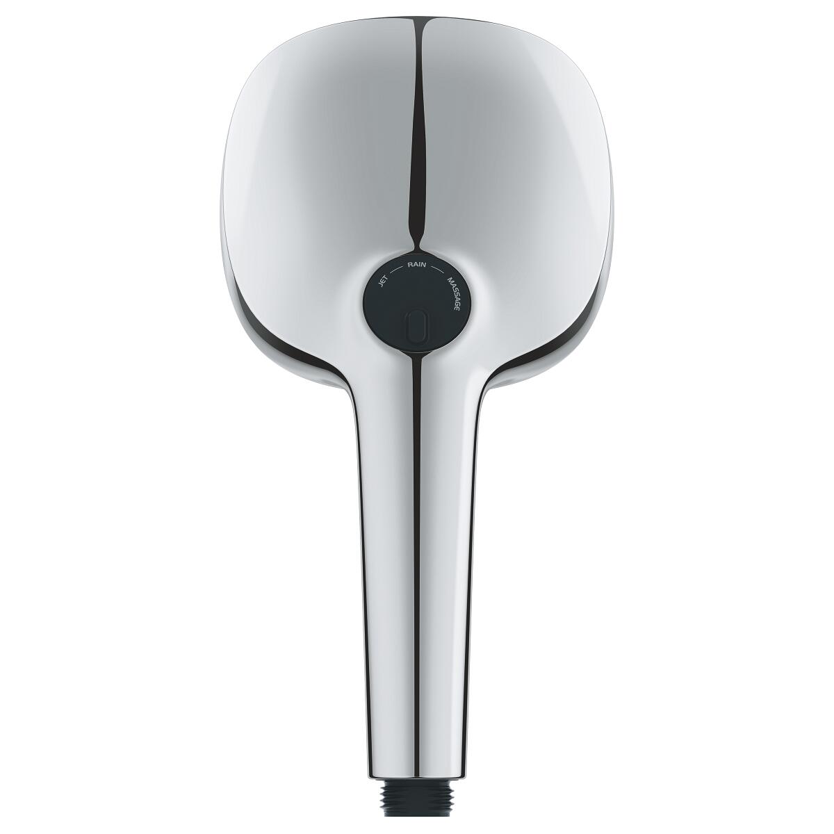 Die überarbeitete GROHE Vitalio Comfort 110 Handbrause verfügt über neue Funktionen und einen schlanken und eleganten Look. So ist sie die ideale Option für jedes Renovierungsprojekt. Die Handbrause mit einer Breite von 110 mm kann drei Strahlbilder ausgeben und lässt sich so an Ihre Bedürfnisse anpassen: Unter dem sanften Rain Strahl lässt es sich gut entspannen, der Massage Strahl belebt die Sinne und der konzentrierte Jet Strahl eignet sich ideal zum Ausspülen von Shampoo.