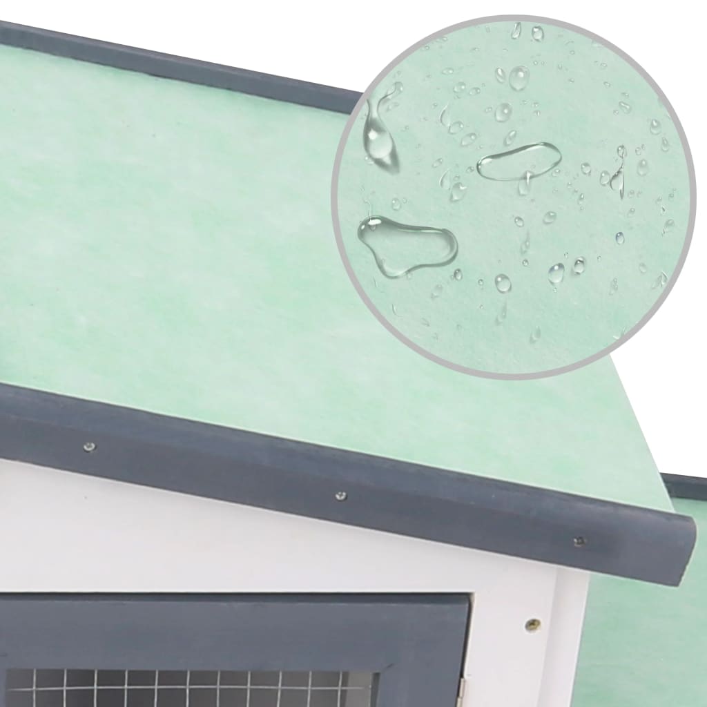 Geben Sie Ihren plüschigen Freunden einen komfortablen Lebensraum mit unserem Deluxe-Käfig aus Holz! Dieser Stall aus Holz mit 2 Etagen bietet einen großen, gemütlichen Lebensraum für die Kleintierhaltung, insbesondere für Kaninchen. Er ist vielseitig einsetzbar: zum Spielen, Trainieren oder einfach zur sicheren Haltung Ihrer Haustiere. Er ist aus massivem, lackiertem Tannenholz gefertigt, das langlebig und sicher für die Tiere ist. Ein Bitumendach schützt Ihre Haustier-Freunde vor Wettereinflüssen von außen. Ein erhöhter Boden hält Ihre Kleintiere sicher, trocken und warm, besonders an Regentagen. Beide Seiten verfügen über eine Rampe, so dass Ihr Haustier problemlos in den oberen Wohnbereich gelangen kann. Er ist für eine einfache Wartung konzipiert und enthält ein herausnehmbares Tropfblech zur leichten Reinigung. Der Außenbereich mit langlebiger Verkabelung sorgt für eine ausreichende Belüftung und hält Haustier im Inneren und Raubtiere draußen. Abschließbare Türen schützen Ihre Haustiere und ermöglichen es Ihnen, sie leicht herauszunehmen und wieder hineinzusetzen. Der Stall ist leicht zu montieren; alle erforderlichen Werkzeuge dafür sind im Lieferumfang enthalten. Wichtiger Hinweis: Wir empfehlen Ihnen, den Kaninchenkäfig unter einem Schutzdach zu stellen. Dadurch wird er eine längere Lebensdauer haben.