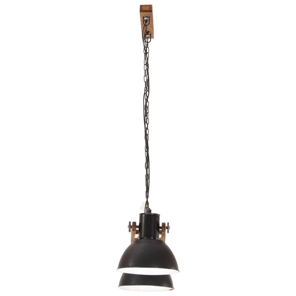 Mit einer Gesamtlänge von 109 cm und einem Durchmesser von 29 cm pro Lampenschirm ist diese Hängelampe ein echter Hingucker im Wohnzimmer, Esszimmer oder Büro. Der Lampenschirm aus Eisen mit schwarzer Beschichtung und massivem Mangoholz mit verwittertem braunem Finish passt perfekt zu jedem Interieur im Landhaus- oder Industriestil. Die Deckenleuchte mit 2 Lampenschirmen verfügt über E27-Fassungen für Glühbirnen von maximal 25 Watt. Sie können E27-Leuchtmittel mit verschiedenen Leuchtfarben auswählen und einsetzen, um eine Atmosphäre der Entspannung und Ruhe zu schaffen. Bitte beachten: Diese Lampe im Industriestil weist Unvollkommenheiten am Lampenschirm auf, was der Lampe ihre eigene Identität verleiht und sie durch ihre raue Optik einzigartig macht. Die Leuchtmittel sind nicht im Lieferumfang enthalten.