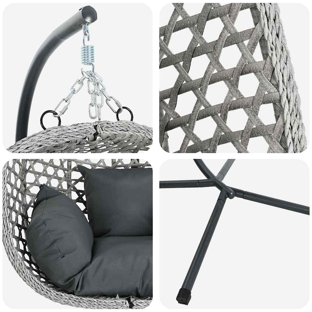 Der vidaXL Hngende Eierstuhl ist eine bequeme Wahl fr entspannte Stunden im Freien, die zu jedem Stil passt. Mit seinem modernen Design ist er perfekt, um alleine zu chillen oder Zeit mit Freunden zu verbringen. Hergestellt aus langlebigen, wetterfesten Materialien, sieht er schick aus und hlt lange. Das praktische Gestell erlaubt es dir, ihn berall aufzustellen - egal, ob auf deinem Balkon, der Terrasse oder wo auch immer - so ist der Komfort immer in Reichweite. Einfach zusammenzubauen, macht es Spa, deinen Auenbereich aufzupeppen.