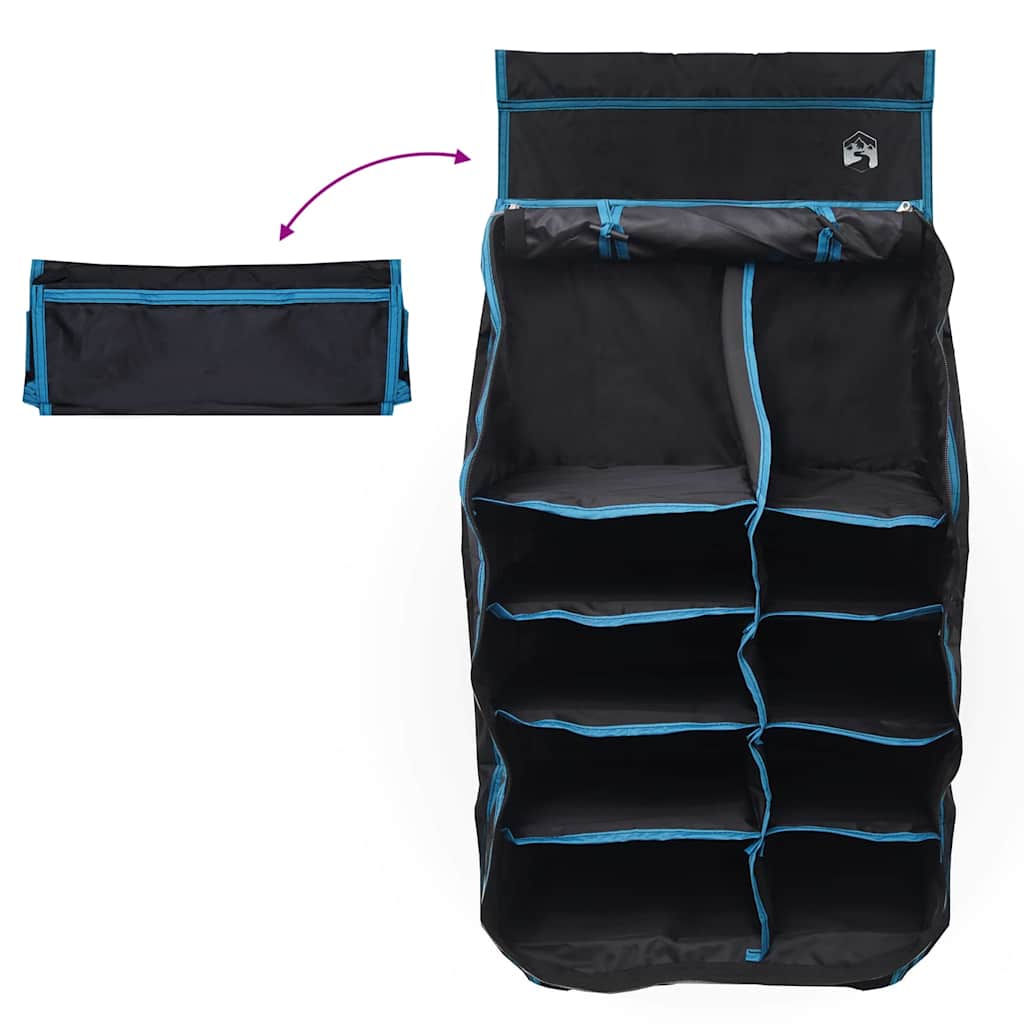 Dieser hängende Organizer mit 10 Taschen verbessert dein Campingerlebnis, indem er Platz für alles Wichtige bietet. Er hat ein modernes Design, das sich perfekt in verschiedene Outdoor-Umgebungen einfügt, ob du in der Wildnis oder im Garten campst. Stilvoll und praktisch ? ideal für Camper, die Wert auf Effizienz und gutes Aussehen legen. Langlebiges Oxford-Gewebe: Hochwertiges, robustes Oxford-Material, das reißfest ist. Es ist atmungsaktiv und wasserabweisend, sodass deine Sachen trocken und geschützt bleiben ? perfekt für die Outdoor-Organisation. Geräumige Fächer: Zehn durchdachte Fächer für unterschiedliche Gegenstände. Der Organizer sorgt für Ordnung und hält Zubehör wie Campingutensilien, Snacks und Toilettenartikel griffbereit, was dir das Campingleben erleichtert. Mit Reißverschluss gesichert: Der sichere Reißverschluss sorgt dafür, dass nichts herausfällt oder verloren geht, wenn du ihn transportierst. Der Reißverschluss funktioniert flink und einfach, sodass du mühelos zugreifen kannst. Einfache Einrichtung: Mit robusten Ösen lässt sich der Organizer leicht an Zelten oder im Auto aufhängen. Das faltbare Design macht es einfach, ihn zu packen und zu verstauen, wenn du ihn nicht brauchst und spart Platz beim Campen. Benutzerfreundliche Wartung: Er ist leicht zu pflegen; einfach mit einem trockenen Tuch abwischen, um ihn sauber zu halten. So behält er sein schickes Aussehen und ist für intensiven Gebrauch geeignet.