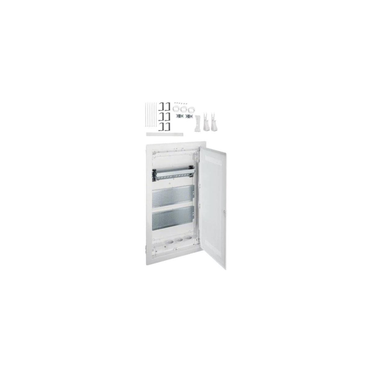 Installationskleinverteiler Unterputz aus Kunststoff, nach DIN VDE 61439-3, geeignet zum Einsatz in Wohngebäuden nach DIN 18015 und zum Einbau von schutzisolierten VDI Komponenten. Schutzart IP30, Schutzklasse II schutzisoliert.