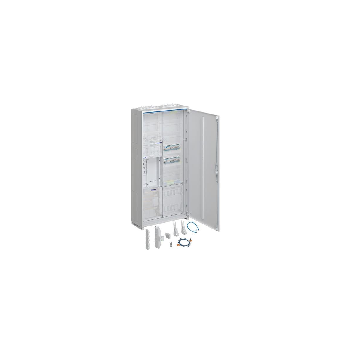 Der Zähler-Komplettschrank univers Z mit der Höhe von 1100mm und zweifeldriger Ausführung bietet eine integrierter Abschlusspunkt Zählerplatz (APZ) und einen 3-Punkt Zählerplatz. Ausgestattet mit Überspannungsschutz eignet sich der Schrank ideal für die Montage Aufputz. Er unterstützt die Installation von Reiheneinbaugeräten und sorgt für eine effiziente Energieverteilung und -messung in Gebäuden.