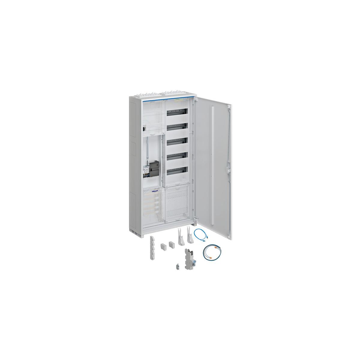 Der Zähler-Komplettschrank, univers Z, mit zwei Felder, Verteilerfeld mit 5 Reihen mit Hutschienen, mit den Maßen 1100x550x205mm, bietet Schutzklasse II und IP Standard 44, APZ, geeignet für raue Umgebungsbedingungen. Ausgestattet mit einem Zählerplatz und fünf Reihen für APZ in Aufputzmontage. Die normgerechte Ausführung unterstützt die Installation und Wartung von Stromzähleranlagen effizient und sicher. Ideal für den Einsatz in Wohn- und Geschäftsgebäuden.