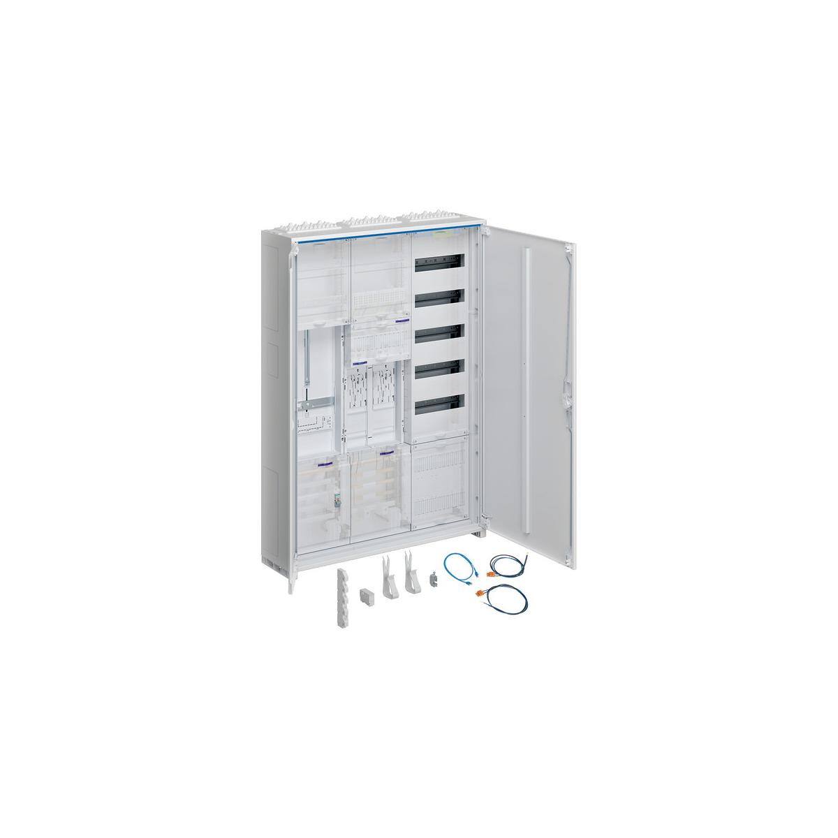 Der Hager Komplettschrank univers Z, Modell mit 1100mm Höhe, bietet eine effiziente Lösung für die Installation von Stromzählern. Er verfügt über zwei Zählerplätze und eine APZ für optimierte Kabelmanagement. Das Gerät beinhaltet eine Sammelschiene BKE-I und ist für Aufputz-Montage konzipiert. Ideal für den Einsatz in Wohn- und Geschäftsgebäuden.