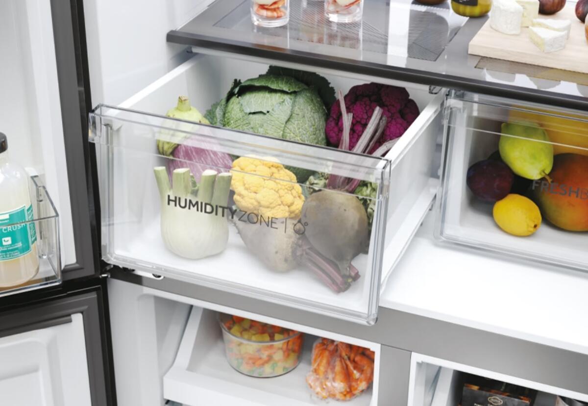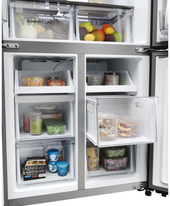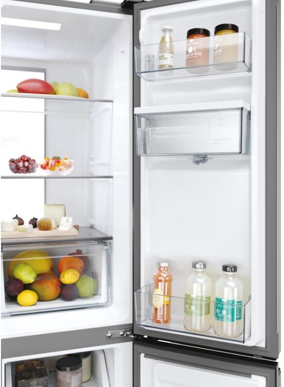 - Das Daylight LED-System von Haier beleuchtet den Inhalt Ihres Kühlschranks mit Doppeltür, so dass jede Ablagefläche komplett sichtbar ist. So finden Sie auch die Lebensmittel sofort, die Sie seltener verwenden. Das helle Licht erleichtert außerdem das Einordnen und die Organisation. Trotz der hohen Leuchtkraft strahlen die LEDs im Innenraum dank der cleveren automatischen Dimmfunktion ein weiches Licht ab, das angenehm für die Augen ist.