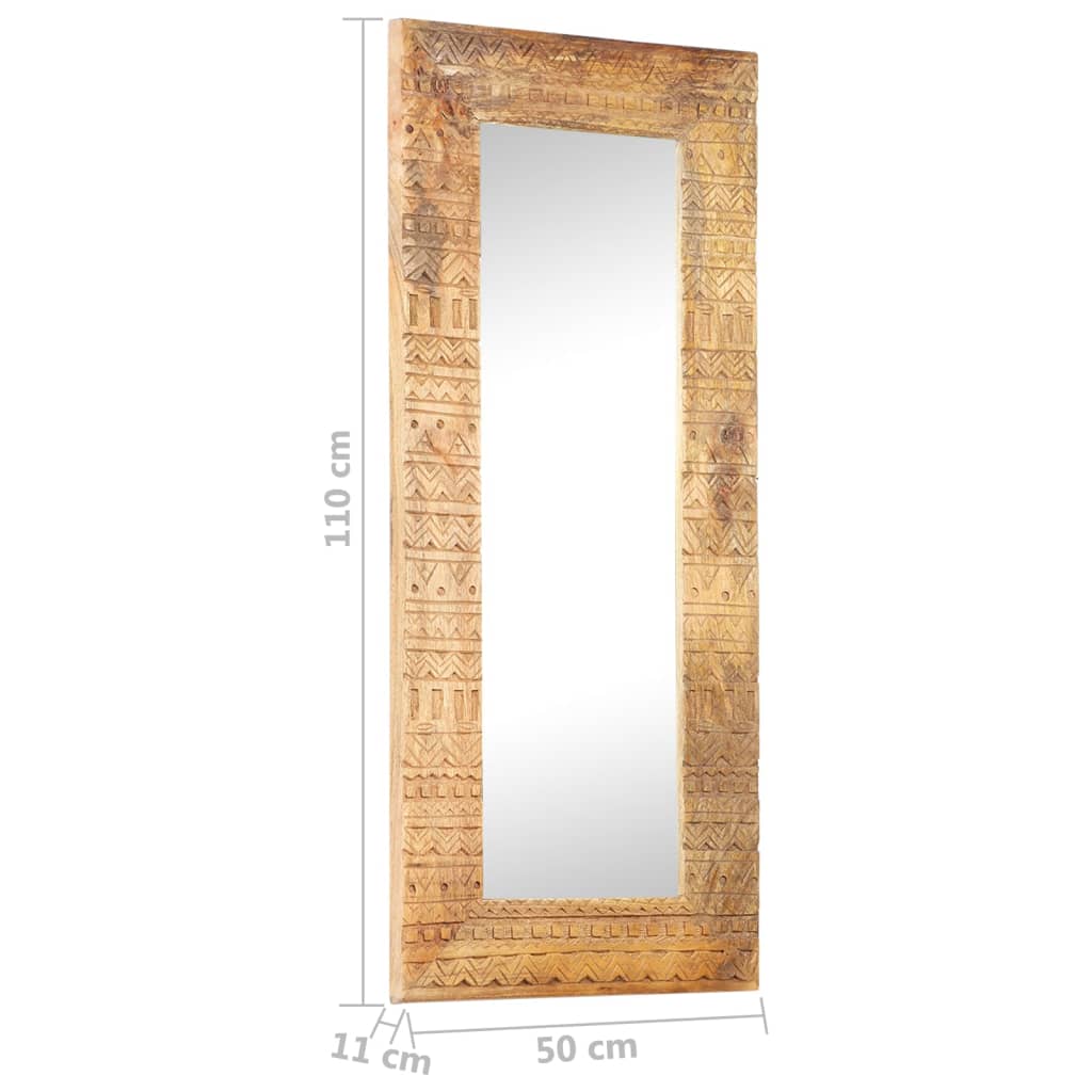 Dieser handgeschnitzte Holzspiegel ist mehr als ein praktischer Alltagsgegenstand, er ist auch ein attraktiver Dekoartikel für dein Zuhause. Dieser Spiegel ist aus Mango-Massivholz gefertigt, einem tropischen Hartholz, das verschleißfest und belastbar ist. Somit ist dieser Spiegel mit Holzrahmen robust und langlebig. Die Handwerkskunst und die schönen Holzmaserungen machen jedes Stück zu einem Unikat. Zusätzlich trägt das handgeschnitzte Muster zur Schönheit des Spiegels bei. Wichtiger Hinweis: Farbe und Maserung variieren von Stück zu Stück, so dass jedes Möbelstück einzigartig ist. Die Lieferung erfolgt nach dem Zufallsprinzip.