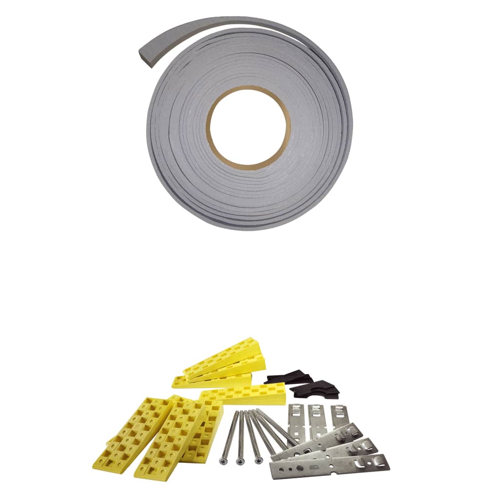 - Inkl. 8 Kunststoffkeile, 6 Distanzscheiben, 6 Wandanker und 6 Metalldübel (Befestigungsschrauben)