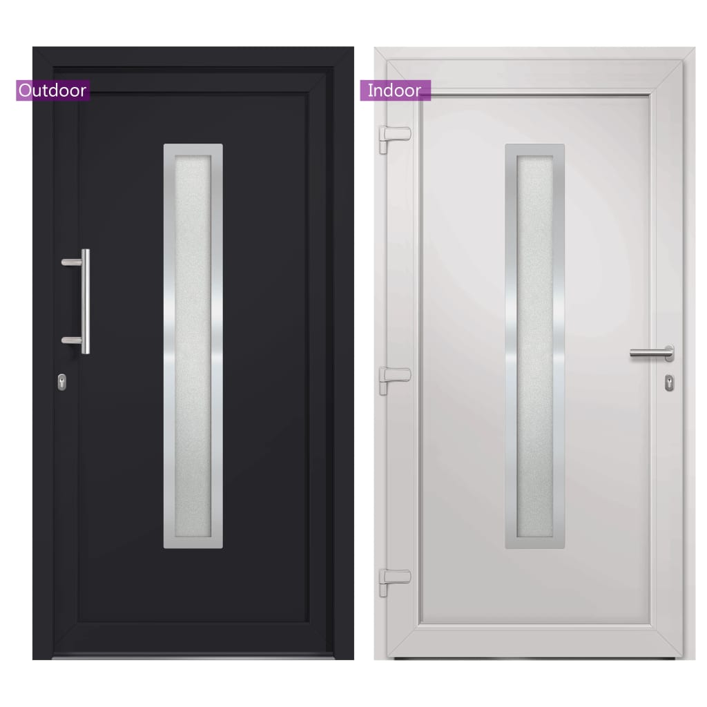 Diese Haustür bereichert den Eingangsbereich Ihres Hauses und sorgt gleichzeitig für mehr Sicherheit für Ihr Zuhause. Es kombiniert elegantes Design mit hervorragenden technischen Eigenschaften. Die Tür misst 98 x 190 cm (B x H). Diese Eingangstür ist mit einem hochwertigen Rahmen und einer hochwertigen Füllung, einer Aluminiumschwelle, verstellbaren 3D-Scharnieren (3 Scharniere pro Tür), 5 Pilzkopfverriegelungen, Isolierverglasung und 1,2 mm Stahlverstärkung ausgestattet. Darüber hinaus überzeugt die Aluminium-Haustür durch die robuste Qualität und den hohen Schließkomfort. Sie erhalten einen kompletten Bausatz, da der Edelstahl-Ziehgriff und der Innengriff sowie der Profilzylinder, die Schlüssel, das Dichtungsband und das Montageset enthalten sind.