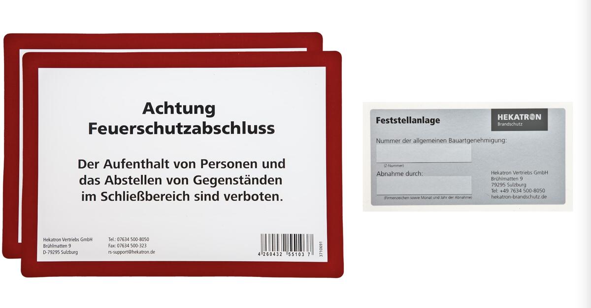DIBt geforderte Prüfsiegel und Aufkleber für eine normkonforme Abnahme. Das KIT besteht aus 2 Hinweisschildern für den Abschluss und einem Abnahmeschild gemäß DIBt.