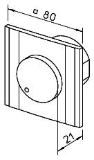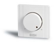 Elektronischer Drehzahlsteller zur stufenlosen Drehzahlsteuerung von Wechselstrom-Ventilatoren, Phasenanschnitt-Prinzip. Mindestausgangsspannung über Poti einstellbar, eingebauter Ein/Ausschalter, ungeregelter Schaltausgang. Überlastungsschutz durch Feinsicherung. Front und Drehknopf aus weißem Kunststoff. Schutzart IP 30, Einbau in 55er Unterputzdose.