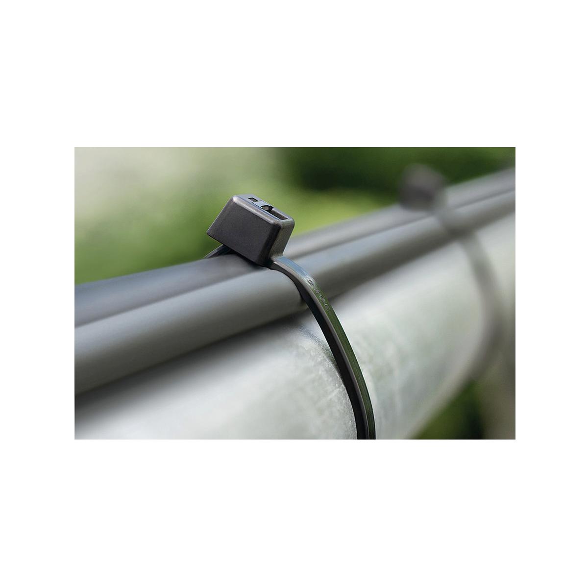 UV-witterungsstabile Kabelbinder in großer Typenauswahl. Zu 100 % aus hochwertigem Kunststoff, daher gut zu recyclen. Innenverzahnung für sicheren Halt am Bündel. Einfache Verarbeitung von Hand oder mit Werkzeug (prozesssicher). Bequemes Einschlaufen durch gewinkeltes Bandende. Diese Innenverzahnten Kabelbinder sind aus UV beständigem Polyamid 6.6 (PA66W) gefertigt und für Außenanwendungen geeignet.