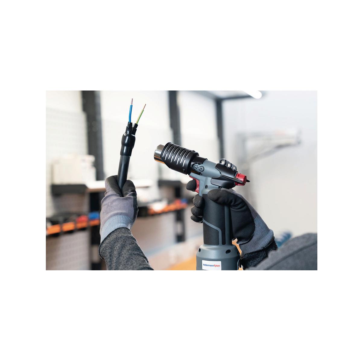 Die kabellose Heißluftpistole CHG900 von HellermannTyton wird mit den P445-Gaskartuschen betrieben und ermöglicht ein autonomes Arbeiten bis 90 Minuten. Die Heißluftpistoleerzeugt einen flammenlosen Luftstrom und ist damit ideal für das Schrumpfen von wärmeschrumpfenden Produkten aller Art, sowie zum Weichlöten, Kunststoffverformen und Entfrosten geeignet. Zudem eignet sich das CHG900 für raue Außenbedingungen mit Temperaturen bis zu -8 °C.
