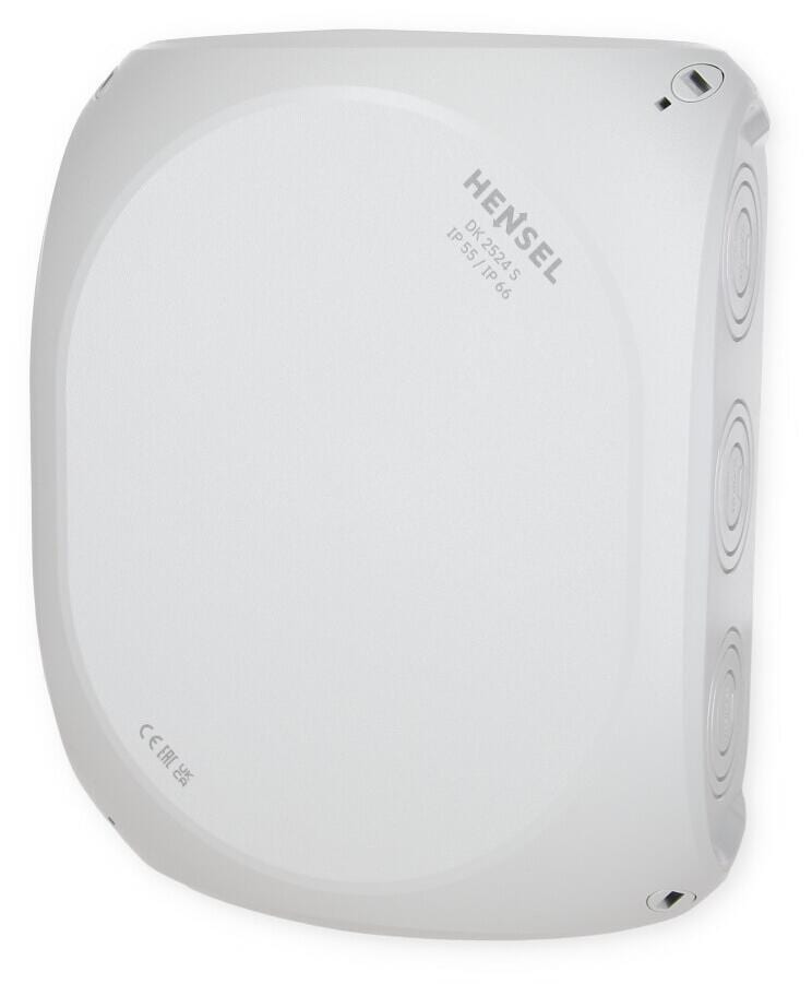 Kabelabzweigkasten aus hochwertigem Thermoplast mit Hauptleitungsabzweigklemmen für Kupferleiter. Für Aufputz-Anwendungen in Gebäuden oder die geschützte Installation im Freien. Mit Außenlaschen zur Befestigung und Deckelbefestigung über Schnellverschlüsse. Mit Hauptleitungsabzweigklemmen bis 25 mm², 4-polig. Kabeleinführung über metrische Vorprägungen in Gehäusewänden und Boden. Beigefügte Einsteckstutzen in Schutzart IP 55