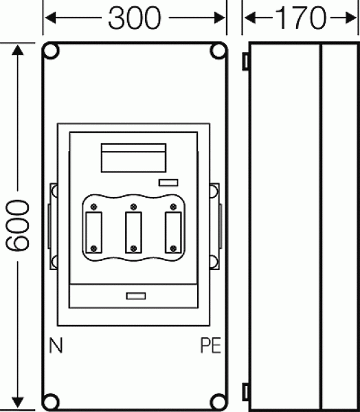 Hensel Mi 5452 NH-Sicherungslasttrenn-Schaltergehäuse 1xNH2, 3-Polig, 400A+PE+N