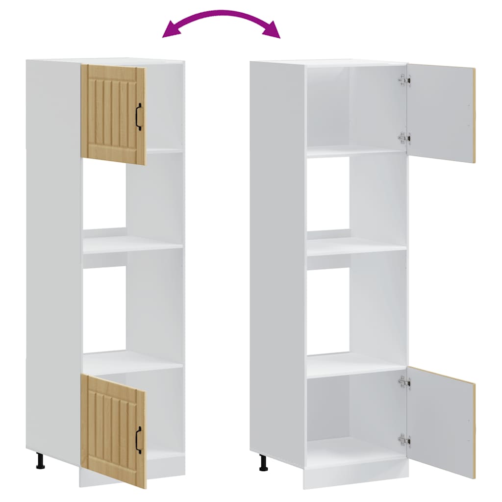 Schaffe einen einzigartigen Stauraum für deinen Ofen mit diesen klassischen Herdumbauschränken! Starkes und langlebiges Material: Holzwerkstoff ist ein langlebiges und robustes Material mit einer glatten Oberfläche, das gegen Feuchtigkeit, Verformung und Rissbildung beständig ist, wodurch es eine zuverlässigen Wahl für die Herstellung von Möbeln ist.Viel Stauraum: Mit einem großen Fach bietet der Herdumbauschrank den idealen Platz für deinen Backofen und deine Mikrowelle.Verstellbare Füße: Die Füße dieses Schranks sind höhenverstellbar, um den Schrank an deine Kücheneinrichtung anzupassen.Platzsparendes Design: Dank seiner kompakten Größe nimmt dieser Umbauschrank nur wenig Platz ein. Daher kannst du damit eine gemütliche Ecke in einer kleinen Küche einrichten.Pflegeleicht: Dank seiner glatten Oberfläche lässt sich der Ofenschrank mit einem feuchten Tuch leicht reinigen und erfordert wenig Pflege. Achtung:Um das Umkippen zu verhindern, muss dieses Produkt mit der mitgelieferten Wandhalterung gesichert werden. Gut zu wissen:Schrauben und Dübel für die Wandbefestigung sind nicht enthalten. Suchen und verwenden Sie die für Ihre Wände geeigneten Schrauben und Dübel. Wenn Sie unsicher sind, suchen Sie professionelle Hilfe. Lesen und befolgen Sie jeden Schritt der Anleitung sorgfältig.
