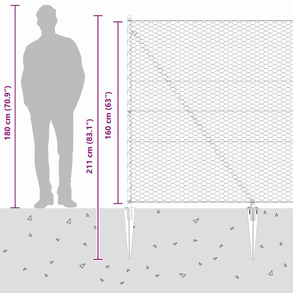 Der vidaXL Hexagon Zaun ist die perfekte Lösung für die Umzäunung von Gärten und anderen Bereichen. Mit seiner modernen grauen Farbe und stabilen Bauweise fügt er sich gut in jede Outdoor-Umgebung ein und bietet gleichzeitig Haltbarkeit und Sicherheit ? genau das, was du für deine Outdoor-Bedürfnisse brauchst. Langlebiges Material: Dieses Zaunset besteht aus pulverbeschichtetem Stahl - robust genug, um alles zu bewältigen, was die Natur dir entgegenwirft, und sorgt für Sicherheit und Stabilität über lange Zeit. Perfekt für Gärten: Die stylische graue Farbe passt super zu modernen Outdoor-Looks und schafft eine sichere Barriere für Haustiere und Kinder. Einfache Montage: Super einfach zusammenzustellen ? zwei Personen können das mit nur einem Hammer und einem Maßband erledigen, damit du deinen Außenbereich ganz schnell genießen kannst. Vielseitige Größen: Mit 50 x 1,6 m passt dieser Zaun in viele Räume und ist super anpassungsfähig für deine speziellen Bedürfnisse. Komplettes Kit: Dieses Set enthält alles, was du brauchst: Pfosten, Spike-Anker, Spannseile und Zubehör für eine stressfreie Montage.