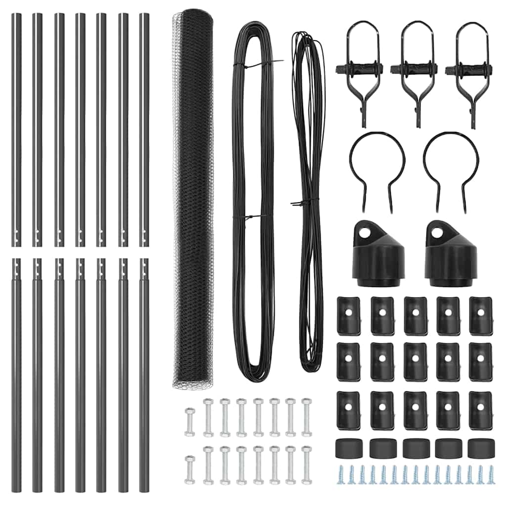 Der vidaXL Hexagonzaun ist die Lösung, um Grenzen um Gärten und Außenbereiche zu ziehen. Mit seiner coolen grauen Farbe und dem stabilen Design macht er deinen Außenbereich schöner und bietet gleichzeitig gute Sicherheit. Er ist eine tolle Wahl für verschiedene Außenanwendungen. Langlebiges Material: Aus UV-beständigem und fleckenresistentem pulverbeschichtetem Stahl, verspricht dieser Zaun lange Haltbarkeit gegen die Elemente. Ideal für Außenbereiche: Sein schickes graues Design passt perfekt in jede Außenumgebung und sichert Bereiche für Haustiere oder Kinder. Einfacher Aufbau: Dieser Zaun ist benutzerfreundlich und kann von nur zwei Personen mit einer Bohrmaschine und einem Maßband schnell aufgestellt werden, sodass du sofort deine Grenzen setzen kannst. Vielseitige Maße: Mit 10 x 1,6 m eignet sich dieser Zaun hervorragend für diverse Außenanwendungen und ist etwas für jeden Aufbau. Komplettes Set: Das Set enthält alles, was du brauchst, einschließlich Metallpfosten, Netz, Spanndrähte und Bodenfixierungen für ein problemloses Aufbau-Erlebnis.