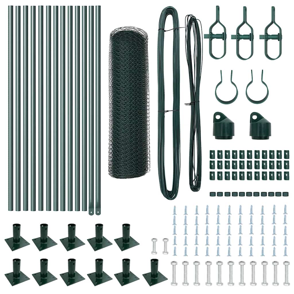 Der vidaXL Hexagonzaun in Grün wurde entwickelt, um dir praktische und stylische Barrieren für draußen zu bieten. Dank seines modernen Looks und der robusten Bauweise ist er nicht nur ein stabiler Zaun, sondern macht auch deinen Garten oder Hof viel attraktiver. Langlebiges Material: Aus Metall mit wetterfester PVC-Beschichtung, die den Zaun gegen äußere Einflüsse schützt. Ideal für draußen: Dieser Zaun schafft sichere Bereiche für Haustiere und Kinder im Garten oder Hof ? und sieht dabei auch noch gut aus. Einfache Montage: Schnell mit nur zwei Personen und grundlegenden Werkzeugen wie Maßband und Schraubenschlüssel zusammengebaut. Modernes Design: Die frische grüne Farbe verleiht dem Zaun einen sauberen Look und passt gut in jede natürliche Umgebung, mit einem modernen Touch zu traditionellen Zäunen. Komplettes Set: Enthält alles Notwendige wie Zaunpfosten, Drahtgeflecht, Clips und Spannungsdraht ? die Montage ist ein Kinderspiel.