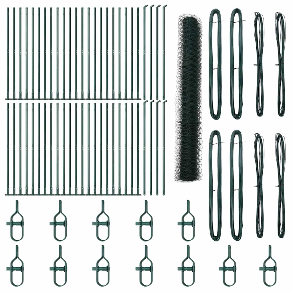 Dieses grüne Außenzaun-Set ist eine stabile und stylische Möglichkeit, deinen Garten und Außenbereiche einzuzäunen. Die schöne grüne Farbe und das solide Design passen perfekt in jeden Außenbereich und halten deinen Raum sicher. Langlebiges Material: Mit seiner UV-beständigen Metallkonstruktion ist dieses Zaunset dafür gedacht, dem Wetter standzuhalten und dir den besten Schutz für deine Außenbereiche zu bieten. Perfekt für Gärten: Die schöne grüne Farbe fügt sich super in die natürliche Umgebung ein und bietet eine sichere Barriere für Haustiere und markiert Bereiche in deinem Hof. Einfache Montage: Für eine unkomplizierte Montage kann dieses Set von zwei Personen mit minimalen Werkzeugen aufgebaut werden, sodass du schnell deinen Zaun installieren und deinen Außenbereich genießen kannst. Vielseitige Größen: Dieses Zaunset hat die Maße 100 x 1,2 m und kann an verschiedenen Orten angepasst werden, sodass es für alle deine Zaubedürfnisse geeignet ist. Komplettes Set: Das Set beinhaltet 5 Zaunteile, verschiedene Anschlüsse und alles, was du für eine einfache Montage brauchst.