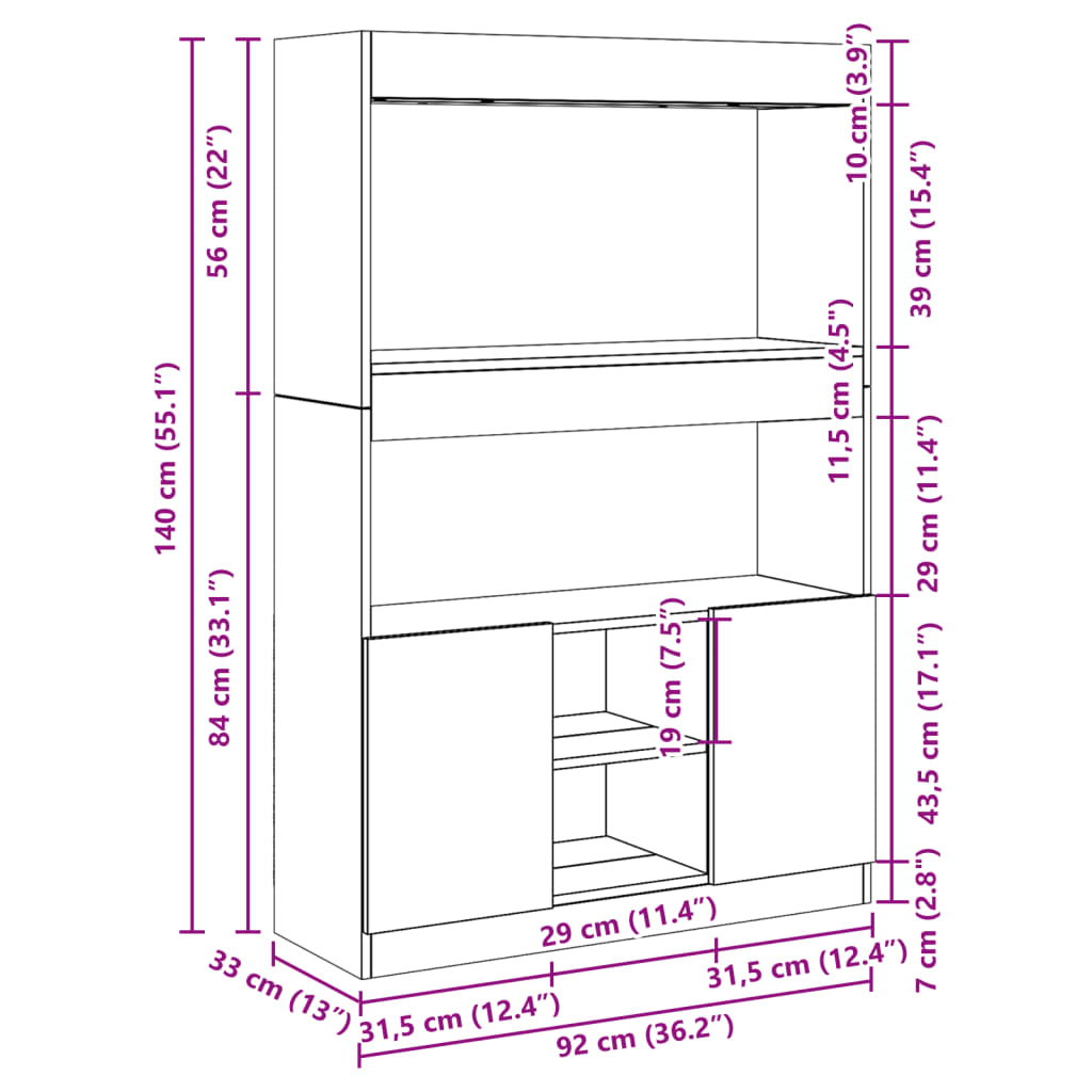 Highboard Sonoma-Eiche 92x33x140 cm Holzwerkstoff