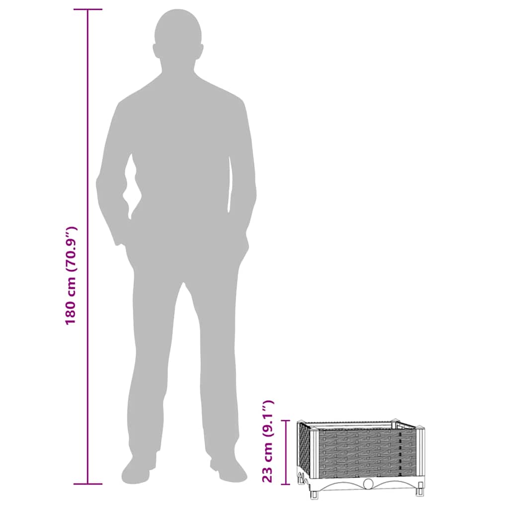 Dieses Hochbeet ist eine ausgezeichnete Wahl, um Blumen oder Gemüse anzubauen - eine großartige Bereicherung für deinen Garten! Langlebiges Material: Polypropylen ist ein beliebter Kunststoff, der bei der Herstellung von Gartenmöbeln häufig verwendet wird. Er ist leicht, robust und stoßfest.Viel Platz: Der Blumenkasten ist tief und breit genug, um eine große Menge Erde aufzunehmen und reichlich Platz für deine Pflanzen, Gemüse, Kräuter und Blumen zu bieten.Stilvolles Design: Mit seiner stilvollen Rattan-Optik macht das Hochbeet in Gärten, auf Terrassen, Balkonen, in Restaurants, Cafés und fast überall eine gute Figur. Gut zu wissen:Um die Montage so einfach wie möglich zu machen, wird jedes Produkt mit einer Anleitung geliefert.