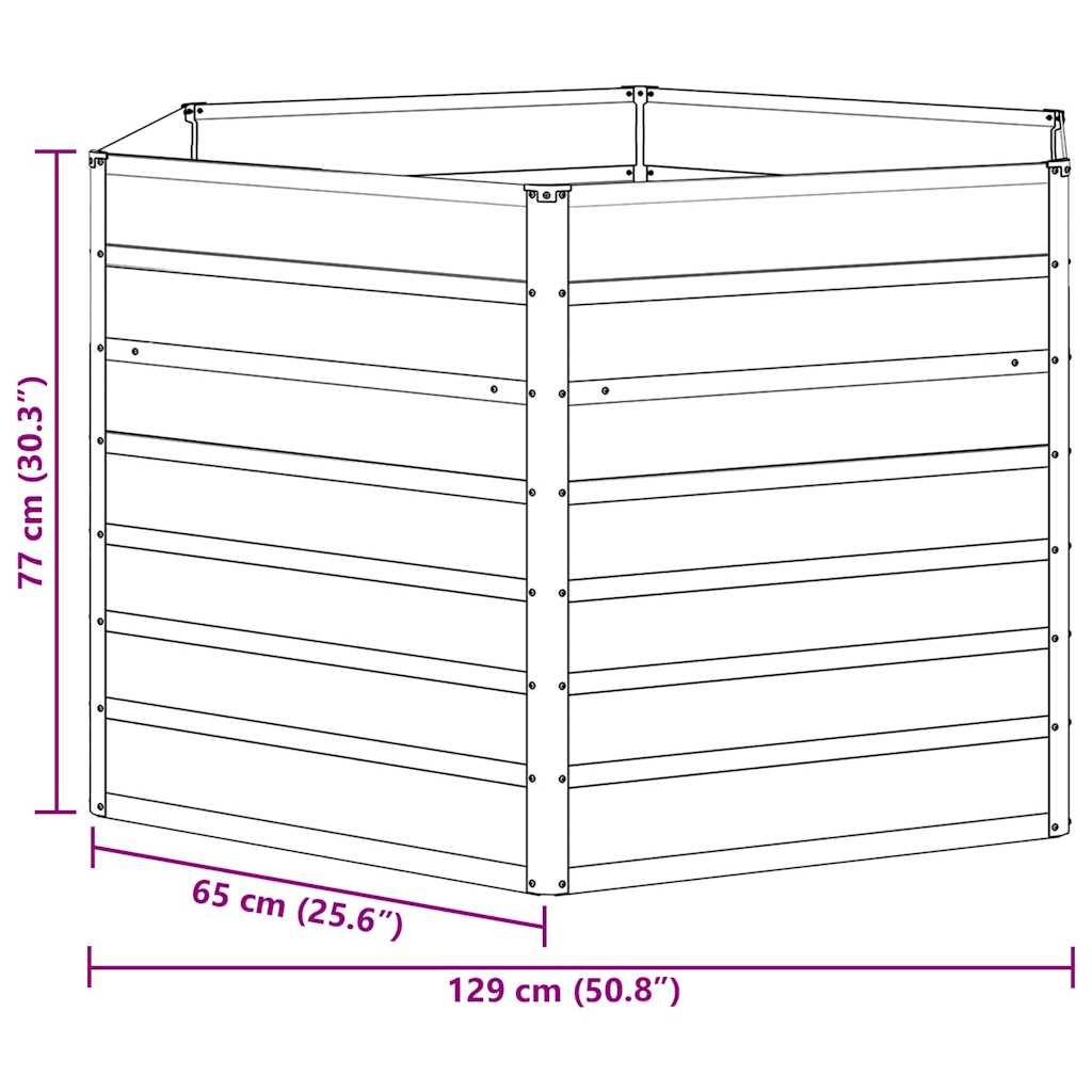 Dieses sechseckige Hochbeet aus verzinktem Stahl hat einen industriellen Look ? ideal für urbane und moderne Außenbereiche. Es sorgt für die besten Wachstumsbedingungen und das offene Design fördert gesunde Wurzeln und gute Drainage. Egal ob erfahrene Gärtner:innen oder Anfänger:innen, alle kommen hier auf ihre Kosten. Mit genügend Platz für deine Lieblingsblumen oder selbstgezogene Gemüse verwandelst du deinen Garten in eine blühende Oase. Wetterfest: Für die Naturfreund:innen gemacht, trotzt dieses Hochbeet den Elementen mit seinen wetterfesten Eigenschaften. Ob Regen, Sonne oder Schnee, die Struktur bleibt unversehrt und bietet eine starke Grundlage für deine Pflanzen. So kannst du mit gutem Gewissen gärtnern. Verzinkter Stahl: Hergestellt aus robustem verzinkten Stahl, behält dieser Pflanzer seine Form und hält lange. Das schicke, industrielle Finish schützt nicht nur, sondern sieht auch gut aus. Dieser strapazierfähige Materialmix benötigt weniger Pflege und macht das Gärtnern noch angenehmer. Offenes Bodendesign: Mit einem offenen Boden ausgestattet, sorgt dieses Hochbeet für die beste Drainage und fördert das Wurzelwachstum, wie in der Natur. So bleiben deine Pflanzen gesund, weil zu viel Feuchtigkeit verhindert wird und ein gutes Umfeld für ihre Wurzeln geschaffen wird. Gute Planung führt hier zu großartigen Erträgen und blühenden Pflanzen. Einfache Pflege: Mit glatten Kanten ist dieses verzinkte Stahl-Hochbeet nicht nur sicher, sondern auch pflegeleicht. Regelmäßige Reinigungen sind schnell gemacht, ohne die Oberfläche zu beschädigen. Ideal für alle, die es einfach haben möchten, ohne auf Stil oder Effektivität zu verzichten. Industrie-Stil: Inspiriert von urbanen Lofts, nutzt dieses Hochbeet rohes Material und klare Linien, um deinem Garten oder deiner Terrasse ein minimalistisches, auffälliges Design zu verleihen. Funktionalität und Form bringen den modernen Gartendesign-Look auf ein neues Level, sodass dein Außenbereich immer zeitgemäß ist.
